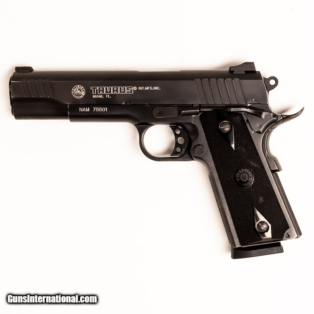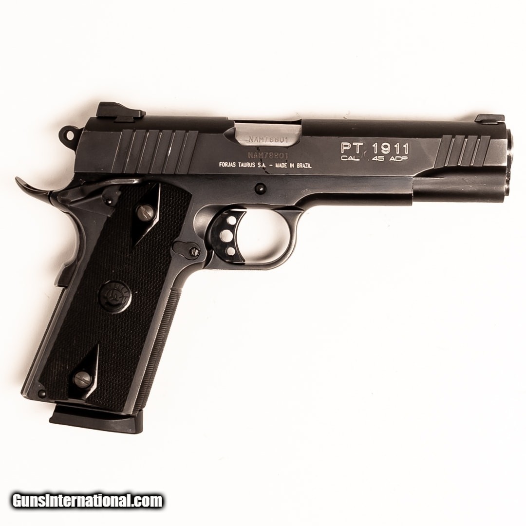 Description: Guns Listing ID: 571713 The Taurus PT 1911 is a modern remake of John Browning‚‚s classic 1911 design. This pistol was upgraded with Heine Straight-Eight combat sights and comes with 1-8 round magazines, a holster, the original case, as well as the user-manual. If you‚‚re looking for a budget friendly 1911 this is a great optio SOLD Manufacturer: TAURUS Model: PT 1911 Caliber Info: .45 ACP Condition: Used - Certified Barrels: 5 BARREL Finish: BLACK |