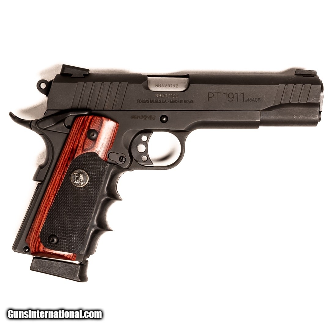 Description: Guns Listing ID: 785849 The Taurus PT1911 is a modern remake of John Browning’s classic 1911 design. This handgun is affordable and features front serrations, a hybrid wood and rubber grip, and modern sights. This handgun features the case, three 8-round magazines, and one 15-round extended magazine. Get the best bang for your buck when you get a Certified Used Firearm . When you see the Certified Used stamp on any of our firearms, you can be confident that you’re getting exactly what you want – a gun only in very good to excellent condition and held to the highest quality standard. All Certified Used Guns come with a ‘no questions asked’ return policy . PLUS, ALL CERTIFIED USED GUNS SHIP FREE! SOLD Manufacturer: TAURUS Model: PT-1911 Caliber Info: .45 ACP Condition: Used - Certified Barrels: 5 BARREL Finish: BLACK |
