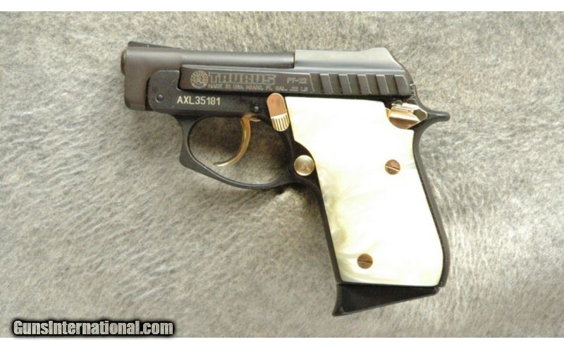 Description: Taurus Model PT-22 pistol .22 LR. Excellent condition, tip-up barrel, double action. With one mag and hard case. SOLD Caliber Info: .22 Long Rifle Metal Condition: Excellent, Light Finish Wear, Few Small Nicks & Scratches Wood Condition: Grips Are In Excellent Condition Bore Condition: Bright Barrels: 2 3/4" Tip-up Barrel Triggers: Double Action Stock: Faux pearl Grips Weight: 16 Ozs Sights: Fixed Iron Sights Extras: With one mag and case Item Location: La Vista, NE |