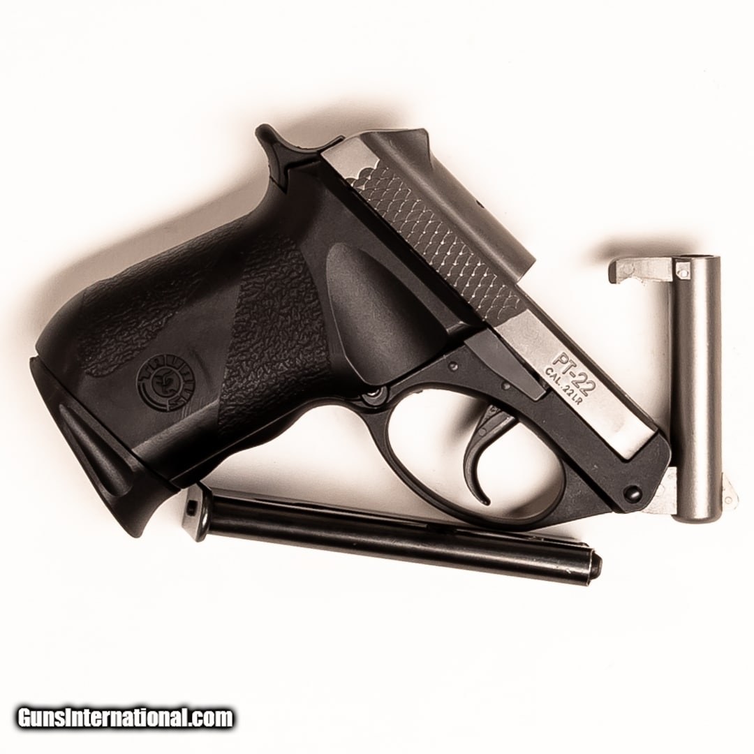 Description: Guns Listing ID: 635234 So light you might forget you even have it concealed on your person, the Taurus PT-22 is ultra-compact and lightweight. This handgun is perfect for the user desiring a lightweight pistol that won‚‚t print through clothing. It also features a tip-up barrel, ideal for those with fading hand strength. This PT-22 includes the original box, manual, and two 8-round magazines SOLD Manufacturer: TAURUS Model: PT 22 Caliber Info: .22 LR Condition: Used - Certified Barrels: 2.8 barrel Finish: TWO-TONE |