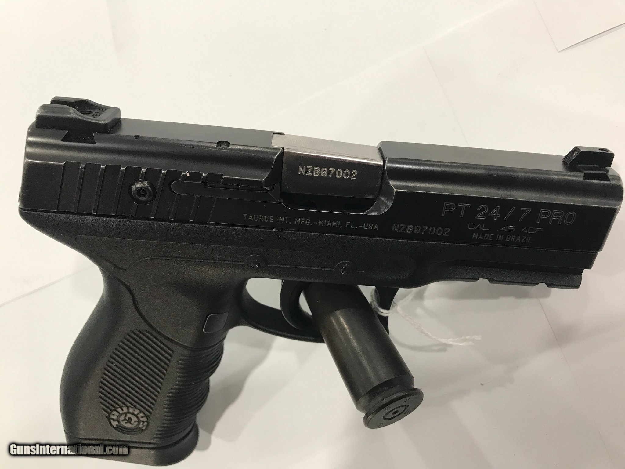 Description: Guns Listing ID: 1289089 Comes with 1 mag. No box. Shows signs of normal wear as shown in photos SOLD Manufacturer: TAURUS Model: Pt 24/7 Pro Caliber Info: .45 ACP Condition: Used - Non-Certified Barrels: 4 BARREL Finish: BLACK |