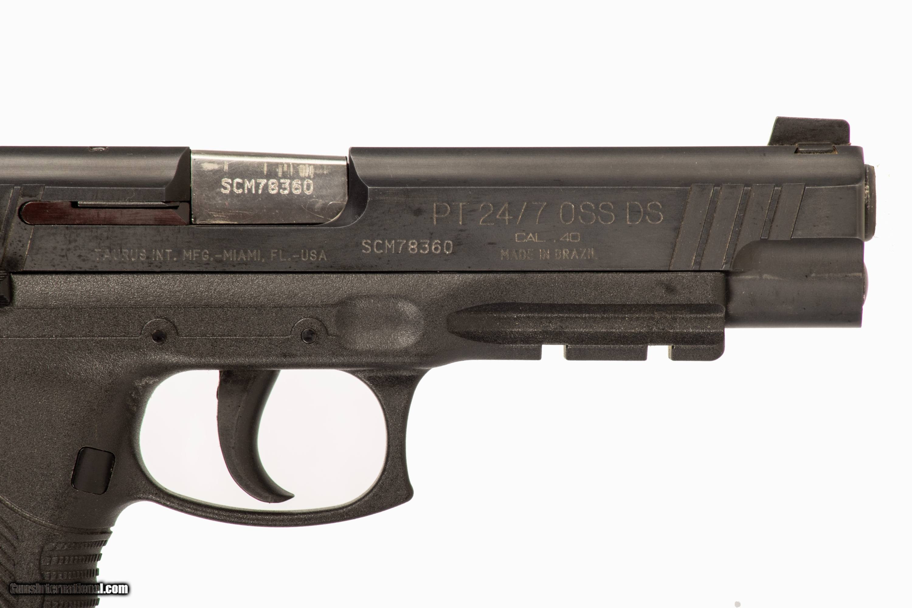 Taurus PT 24/7 Tactical chambered in 40 S&W with a 5 inch barrel bright & shiny bore case and 2 extra magazines. This is a used firearm that is in very good condition and is covered by Dury's Lifetime Warranty.