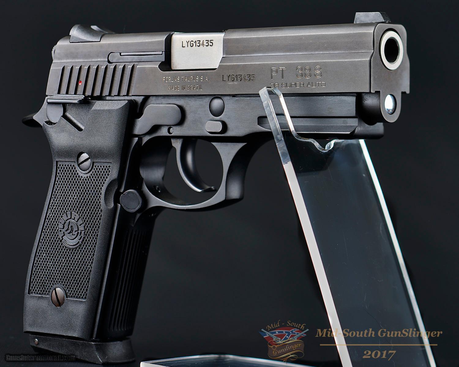 Description: Presented for sale, you will find a Taurus PT-38S Chambered in 38 Super. In my opinion, this PT-38S warrants rates NRA Very Good. The images will illustrate this pistol much better than I can describe. Included in the listing is the pictured Taurus PT-38S, one (1) ten (10) round magazine, cleaning brush and OEM Box. This pistol will ship via FedEx Express Standard Overnight to the lower 48 for $49.95. Thank you for looking. Our phones are answered 24/7 by a human that speaks English. Mid-South GunSlinger Will Sell Your Guns for You!!!