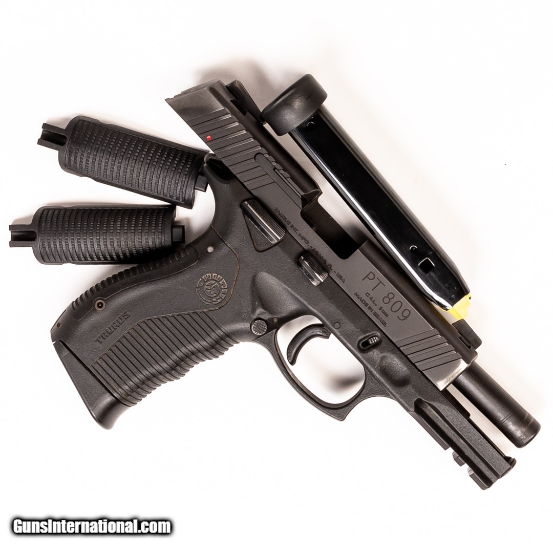 Description: Guns Listing ID: 457978 The Taurus PT 809 is a semi-automatic 9mm pistol with an external safety. This is an affordable option that is perfect for range use or personal protection. 2-17 round magazines, the original case, manual, 3 sizes of backstraps, and lock out keys are included. SOLD Manufacturer: TAURUS Model: PT 809 Caliber Info: 9MM LUGER Condition: Used - Certified Barrels: 4.25 BARREL Finish: BLACK |