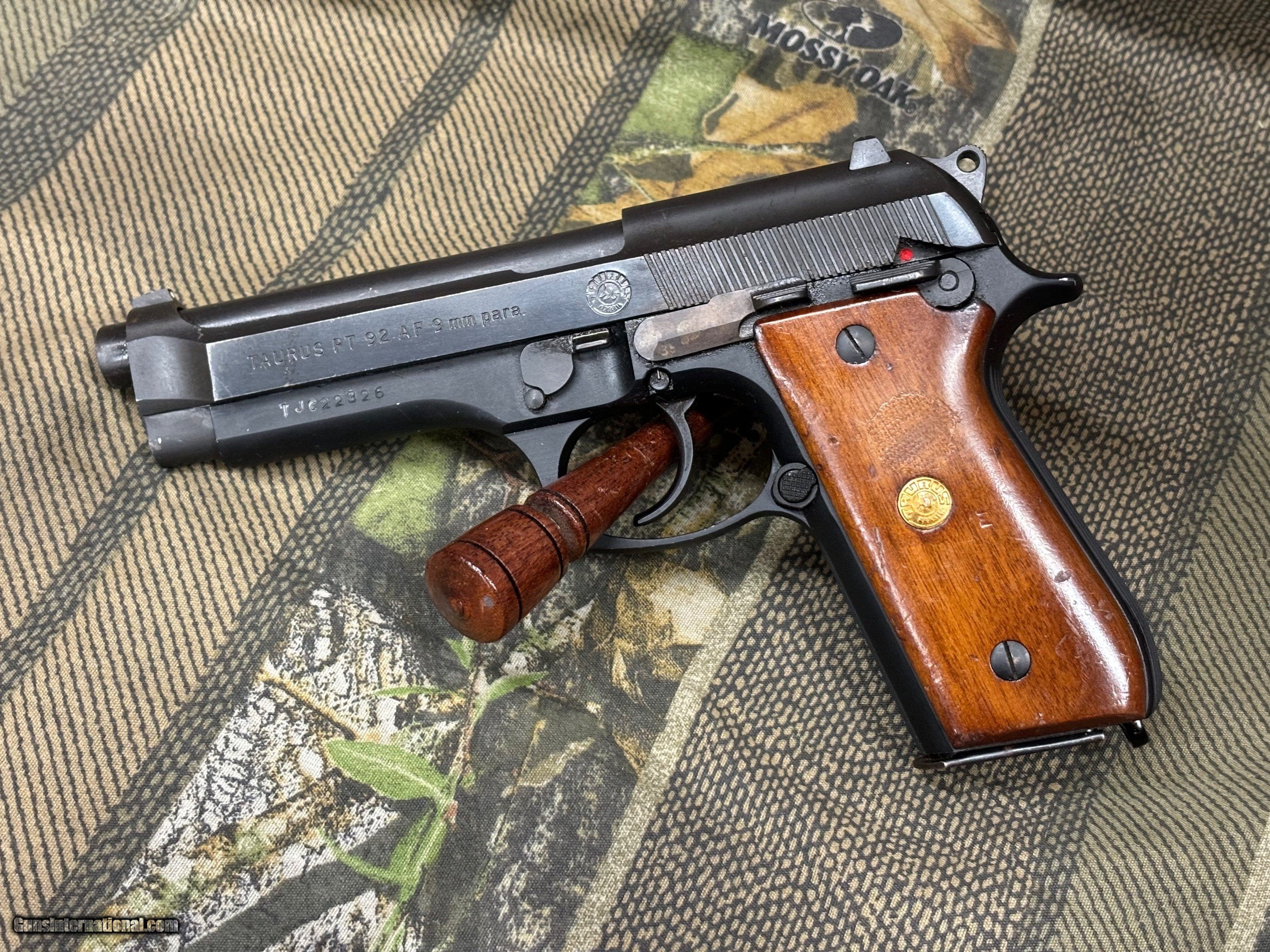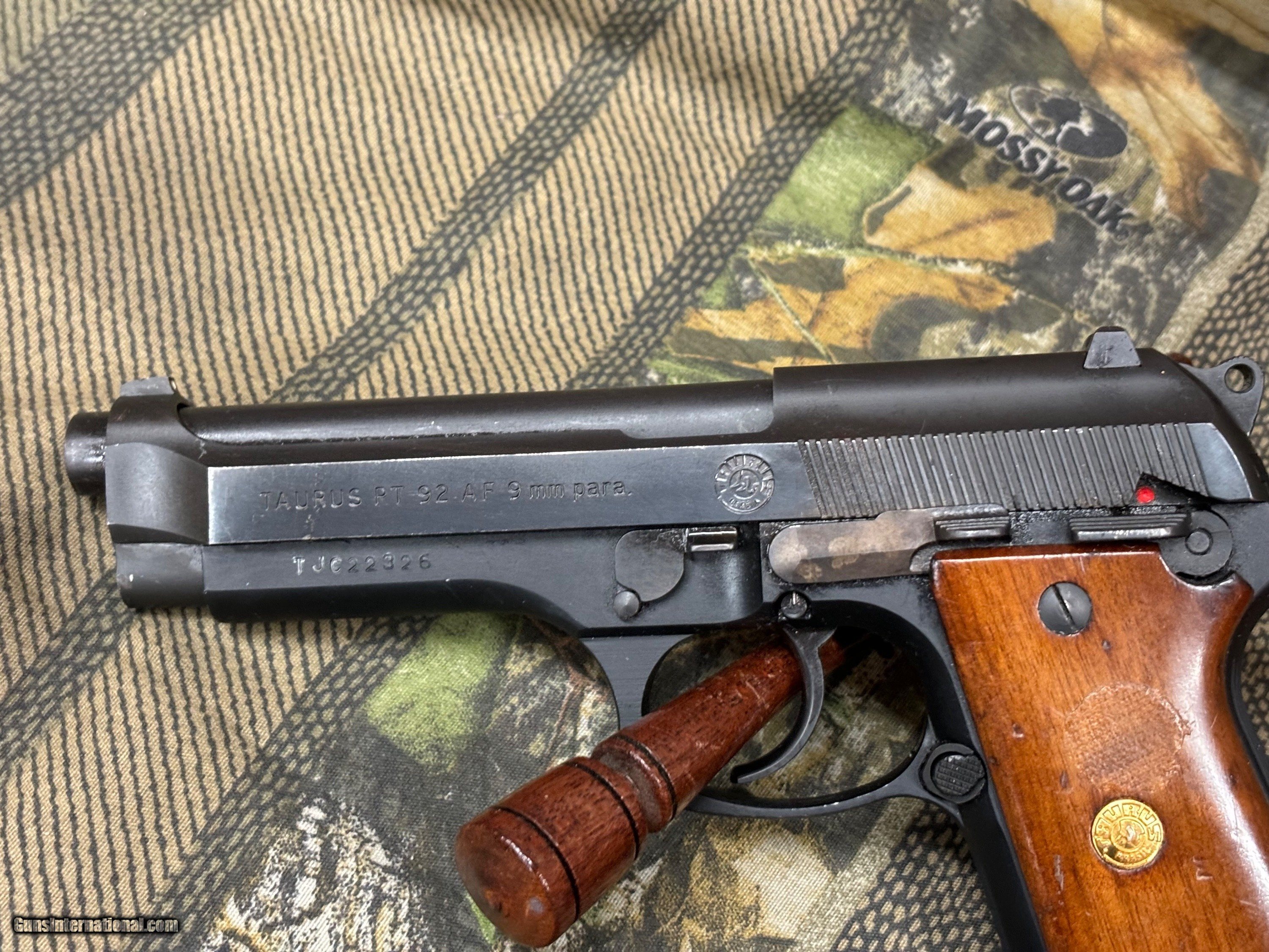 Description: Taurus PT 92 9mm This is a Beretta clone. Great shooter with one 15 round mag. Clean and smooth......wood grips show greatest wear. $269.00 $26.00 to ship If you are WEST of the Mississippi shipping will be $10.00 extra Thank you for looking at our items. If it is listed on the site and not marked "Sale Pending" or "Sold ", we still have it in the shop. If you wish to buy, hit buy it now and call the shop to pay. We are open Monday thru Friday 10:00am-3:00pm EST ...........Ask for Bree....... (803) 874-1060. Please CALL the shop first if you are in California. You need to verify you can have this weapon, since we DO NOT accept returns from California. THERE IS A 3.5% CARD FEE. NO INTERNATIONAL SALES SOLD Handgun Caliber: 9x19mm Parabellum (9mm Luger, 9x19mm NATO) |