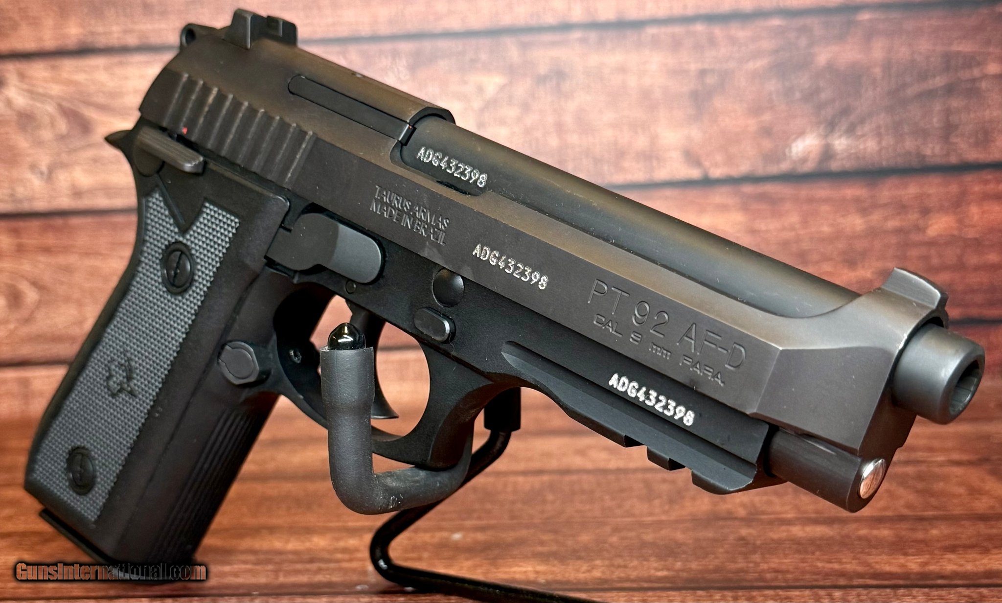 Description: Guns Listing ID: 536288 The Taurus PT92 AF-D stands as a testament to both time-honored design and cutting-edge enhancements, offering a semi-automatic experience that is both reliable and refined. With its roots tracing back to the iconic Beretta 92 series, this pistol showcases a harmonious blend of Brazilian craftsmanship and Italian design, cultivated since the 1980s. For collectors and shooting enthusiasts, the PT92 AF-D is not just a firearm—it‚s a piece of history, boasting a legacy of excellence and performance. In terms of condition, this PT92 AF-D is in very good shape, exhibiting only light, superficial signs of prior handling or use. The barrel presents a bright, clean bore with excellent rifling—sharp lands and grooves that promise precise shooting. While there are some light marks and scratches, these do not detract from the overall visual and functional appeal. Included in this sale is a free soft carry case and one 15-round magazine, ensuring that you‚re range-ready from the moment you receive it. The Taurus PT92 AF-D is distinguished by its DA/SA action, offering a smooth and versatile shooting experience. Firearm also has a decocker feature. Its black finish provides a sleek, tactical appearance, while the 4.9\" barrel ensures accuracy without compromising on portability. With a capacity of 15+1, it proves to be a formidable companion for both competitive shooting and personal defense. Owning a Taurus PT92 AF-D means embracing a firearm that reflects a rich lineage, marrying the robust construction typical of Brazilian manufacturing with the elegant design principles of its Italian counterparts. Whether you‚re a seasoned collector or a discerning enthusiast, this pistol offers a unique opportunity to own a piece of firearm history that continues to perform with grace and precision. Specifications Manufacturer: Taurus Model: PT92 AF-D Caliber: 9mm Luger Overall Condition: Very good condition, showing only light, superficial signs of prior handling or use Bore Overall Condition: Excellent - Clean, mirror finish, no signs of wear Bore Rifling: Excellent Rifling - Sharp lands and grooves Action: DA/SA Capacity: 15+1 Barrel Length: 4.9\" Finish: Black What’s Included: Free Soft Carry Case Magazines Included: 1x 15rd mag SOLD Manufacturer: TAURUS Model: PT-92 AF-D Caliber Info: 9MM LUGER (9x19 PARA) Condition: Used - Non-Certified Barrels: 4.9 BARREL Action: SEMI AUTOMATIC Finish: black |