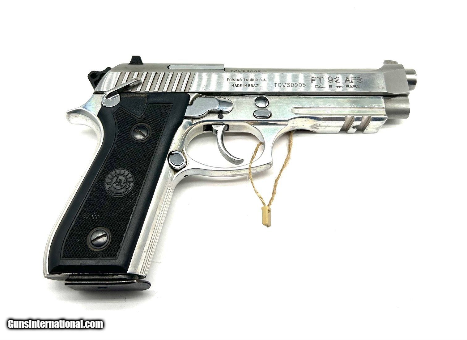 Description: Guns Listing ID: 543864 Taurus PT 92 AFS – 9mm Luger (9x19 Para) Semi-Automatic Pistol The Taurus PT 92 AFS is a full-size semi-automatic pistol chambered in 9mm Luger (9x19 Para), designed for duty, personal defense, and range use. Manufactured in Brazil by Taurus, the PT 92 AFS is an updated variant of the classic 92-series platform, offering modern features combined with the reliability of a proven design. Built with a durable steel frame and slide, the PT 92 AFS features an ambidextrous frame-mounted safety/decocker, a comfortable grip with aggressive texturing, and a robust double-action/single-action trigger system. Its accessory rail and improved ergonomics make it a versatile choice for tactical or everyday carry applications. Specifications Model: Taurus PT 92 AFS Caliber: 9mm Luger (9x19 Para) Action: Semi-automatic, double-action/single-action Barrel Length: 4.9 inches Overall Length: 8.5 inches Height: 5.5 inches Width: 1.5 inches Weight: ~36.6 oz (unloaded) Sights: Fixed 3-dot steel sights Capacity: 17+1 rounds The Taurus PT 92 AFS in 9mm Luger delivers a blend of classic design and modern enhancements, offering dependable accuracy and solid ergonomics. Designed for shooters who demand reliability and versatility, the PT 92 AFS remains a strong contender in the full-size service pistol category. SOLD Manufacturer: TAURUS Model: PT 92 AFS Caliber Info: 9MM LUGER (9x19 PARA) Condition: Used - Non-Certified Barrels: 4.9 BARREL Action: SEMI AUTOMATIC Finish: CHROME AND BLACK |