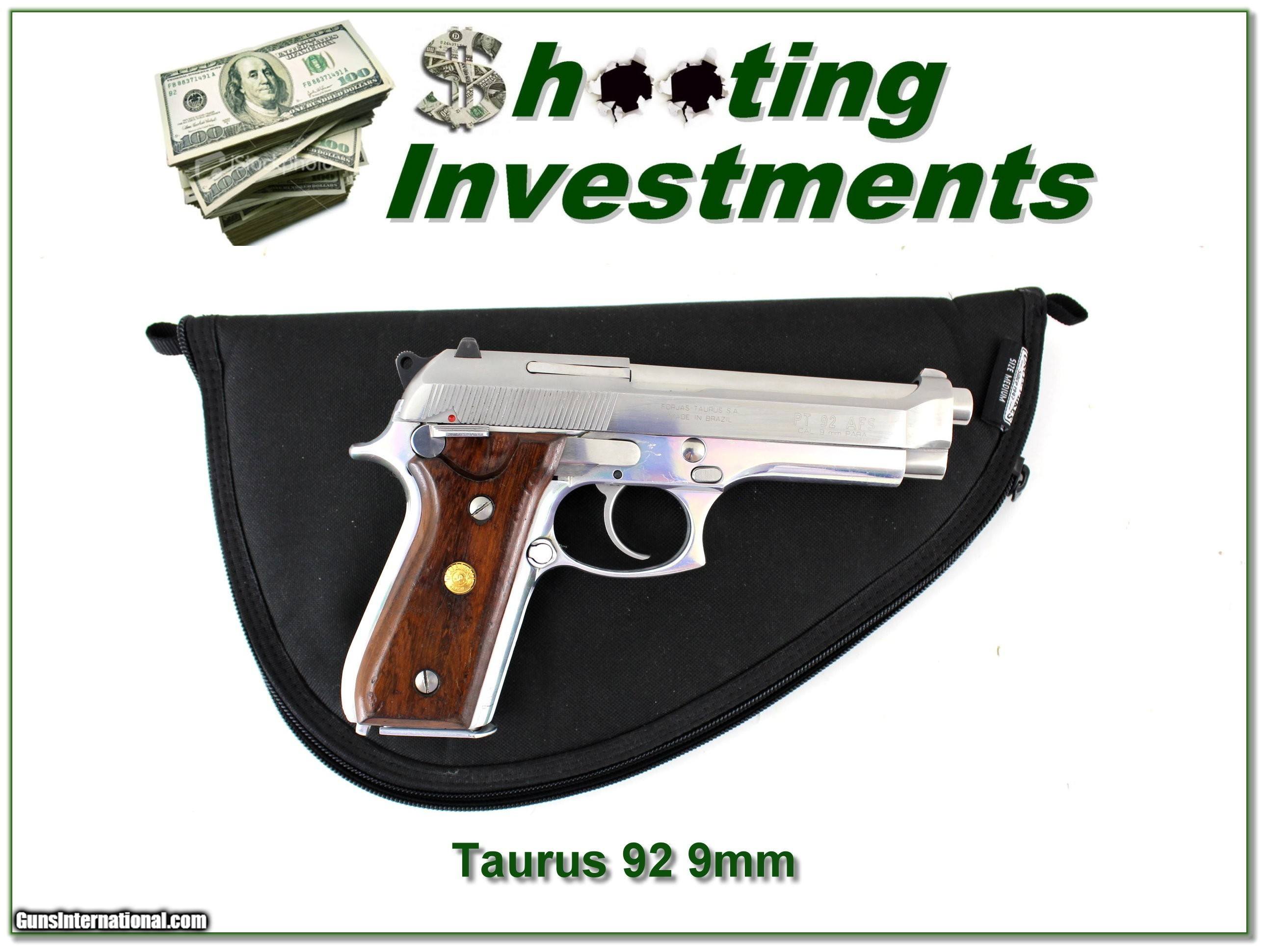 Description: This is a Taurus Model 92 9mm. It is polished nickel with wood grips and comes with 2 magazines in soft case as seen. It has a few minor marks from use. I am selling this one on consignment and as such lay-a-way can’t be used. It does of course have the standard 3-day inspection. Shipping and insurance is $49. Please email me with any questions or larger pictures. (Consign your quality firearms with Shooting Investments for only 12%! Let me know if you have any you would like to sell!) 23-0730 Payment: Payment is by Money Order, Cashier’s Check or Personal Check. I can now also accept Credit Cards (MasterCard, Visa, Discover & American Express) with a 3% convenience fee. Shipping: The shipping charge will be listed in each description. It is $49 for most firearms. Some heavy guns or those insured for over $2000 will be higher. Shipments to Alaska and Hawaii are higher because air shipment is required. Most firearms are shipped on Tuesday and Thursday and usually in 5 days of receipt of payment. We package all shipments carefully and insure them. Optics are shipped Priority Mail and most other non-firearm shipments are shipped First Class. Returns: Our return policy is simple. If for any reason you are not pleased with your purchase, you may return your item for a full refund of purchase price. Ammunition cannot be returned. It is important to us that you are happy. Guns cannot be fired or dissembled before returning them and they must be returned in the same condition as received. Notification of a return must occur within 3 days of receipt at your dealer. Shipping, convenience and dealer fees are not refundable and are the responsibility of the buyer. Lay-a-way: If needed, we offer a 60 day lay-a-way option on most firearms. It is 1/3 now, 1/3 in 30 days and 1/3 in 60 days. Lay-a-way firearm sales are final and cannot be returned. If a lay-a-way is not completed the first payment cannot be refunded. Consigning your firearms with Shooting Investments: We will help you get top dollar for your firearms. While most local guns shops charge 20% or more, our fee is only 12% with a minimum of $75. At your local gun shop it might take months to sell. Selling on-line provides instant access to thousands of interested buyers. You won’t find any other on-line dealer willing to sell your firearms for only 12% or listing every gun on 3 separate s. Selling through an House typically costs the seller 15% and the buyer an addition 15% (so 30%) and you have to wait several months to sell and longer to receive funds. If properly priced, we will sell your firearms within a few weeks. Send us an email or give us a call and we’ll explain how easy it is for you to get top dollar. Trading: Trading for us is really just buying your gun to re-sell. If you have a gun you want to trade, please email a picture and we will let you know what we can give for it. You will always get more if we sell it for you on consignment. Payment: Payment is by Money Order, Cashier’s Check or Personal Check. I can now also accept Credit Cards (MasterCard, Visa, Discover & American Express) with a 3% convenience fee. Shipping: The shipping charge will be listed in each description. It is $49 for most firearms. Some heavy guns or those insured for over $2000 will be higher. Shipments to Alaska and Hawaii are higher because air shipment is required. Most firearms are shipped on Tuesday and Thursday and usually in 5 days of receipt of payment. We package all shipments carefully and insure them. Optics are shipped Priority Mail and most other non-firearm shipments are shipped First Class. Returns: Our return policy is simple. If for any reason you are not pleased with your purchase, you may return your item for a full refund of purchase price. Ammunition cannot be returned. It is important to us that you are happy. Guns cannot be fired or dissembled before returning them and they must be returned in the same condition as received. Notification of a return must occur within 3 days of receipt at your dealer. Shipping, convenience and dealer fees are not refundable and are the responsibility of the buyer. Lay-a-way: If needed, we offer a 60 day lay-a-way option on most firearms. It is 1/3 now, 1/3 in 30 days and 1/3 in 60 days. Lay-a-way firearm sales are final and cannot be returned. If a lay-a-way is not completed the first payment cannot be refunded. Consigning your firearms with Shooting Investments: We will help you get top dollar for your firearms. While most local guns shops charge 20% or more, our fee is only 12% with a minimum of $75. At your local gun shop it might take months to sell. Selling on-line provides instant access to thousands of interested buyers. You won’t find any other on-line dealer willing to sell your firearms for only 12% or listing every gun on 3 separate s. Selling through an House typically costs the seller 15% and the buyer an addition 15% (so 30%) and you have to wait several months to sell and longer to receive funds. If properly priced, we will sell your firearms within a few weeks. Send us an email or give us a call and we’ll explain how easy it is for you to get top dollar. Trading: Trading for us is really just buying your gun to re-sell. If you have a gun you want to trade, please email a picture and we will let you know what we can give for it. You will always get more if we sell it for you on consignment. SOLD |