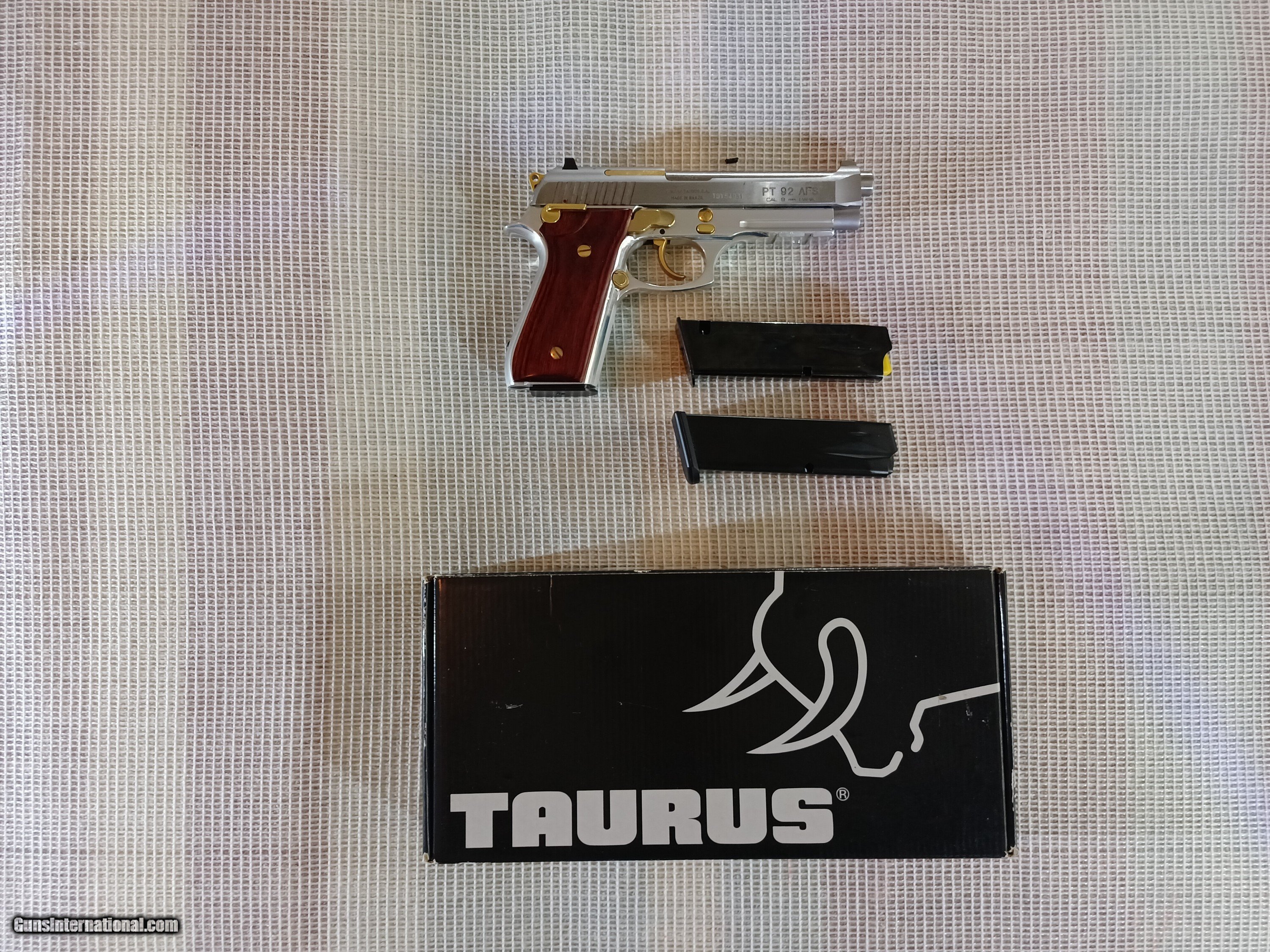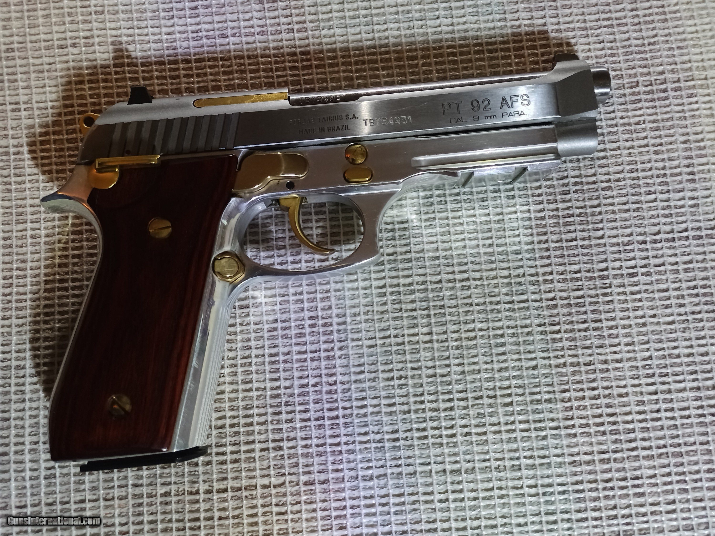 Taurus PT 92 AFS, 9mm Stainless Gold & Rosewood 17+1, 1 extra 18rd mag