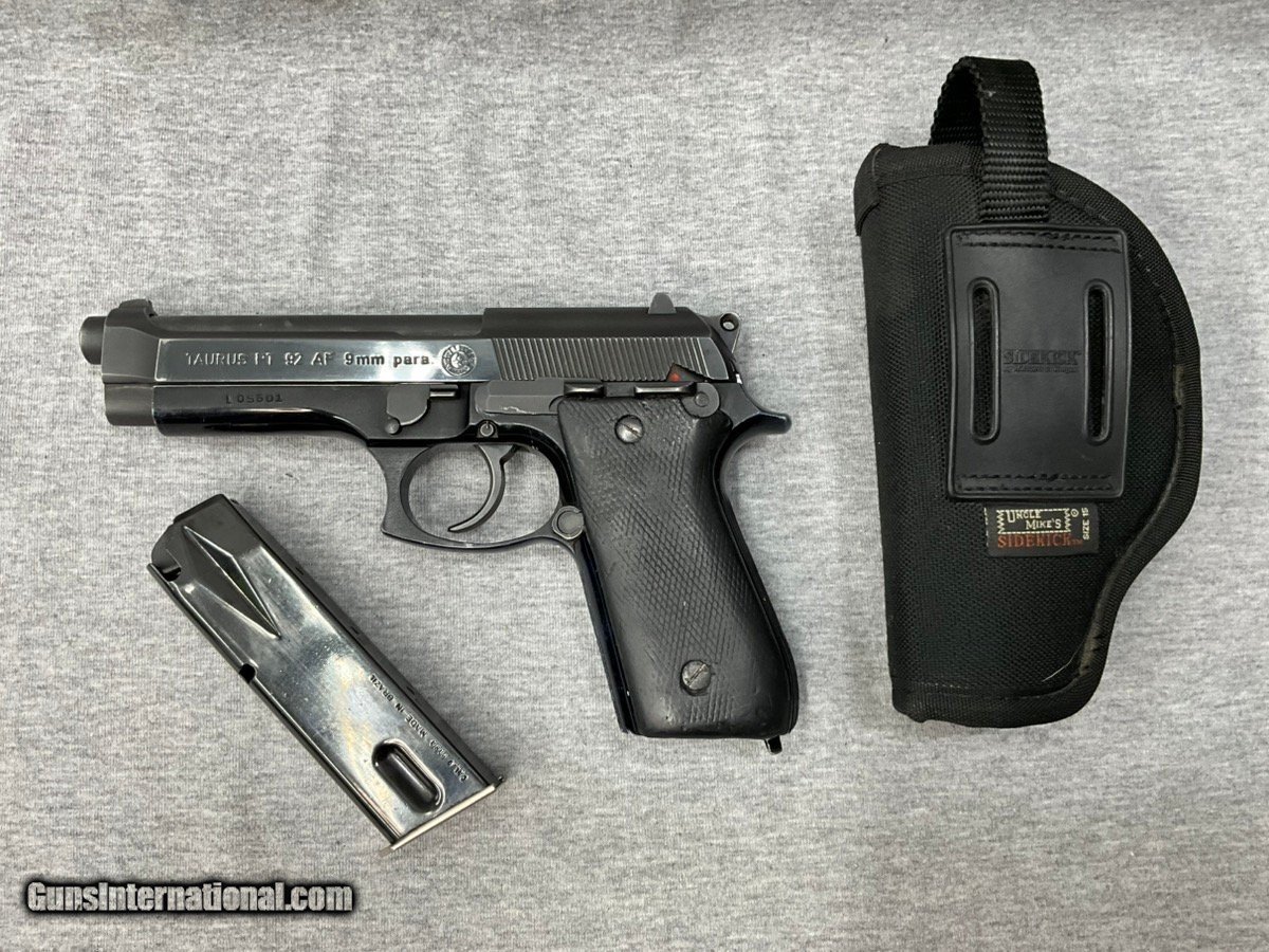 Description: Guns Listing ID: 584511 TAURUS PT 92 AF — DEPENDABLE FULL-SIZE 9MM WITH CLASSIC SLIDE AND STEEL FRAME. WELL-MAINTAINED, SMOOTH ACTION AND SIGHTS. INCLUDES UNCLE MIKE‚S SIDEKICK HOLSTER FOR SECURE CARRY. GREAT VALUE FOR RANGE OR BACKUP. PRE-OWNED, READY TO SHOOT. EXCELLENT. Manufacturer: TAURUS Model: PT-92AF Caliber Info: 9MM LUGER (9x19 PARA) Condition: Used - Non-Certified Barrels: 5" BARREL Action: SEMI AUTOMATIC Finish: Black (Matte) Price: $399.99 Contact Seller |