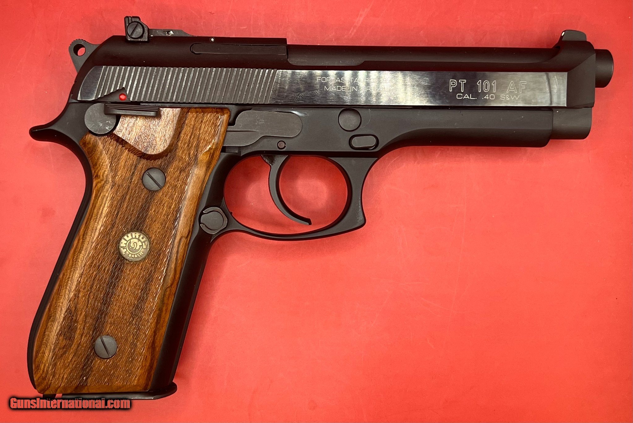 Description: Guns Listing ID: 512449 Fashioned after the Beretta Model 96, the Taurus PT-100 and PT-101 large frame pistols feature an ambidextrous three position safety, loaded chamber indicator and a choice of finishes and trims. Some models feature an integrated accessory rail. The PT-101 has an adjustable rear sight. 1 - 11 ROUND MAG ****IF YOU HAVE QUESTIONS ON CONDITION OF THE FIREARM LISTED, ASK THEM BEFORE YOU BUY. IF YOU WOULD LIKE ADDITIONAL PHOTOS, ASK FOR THEM BEFORE YOU BUY. DO NOT PURCHASE UNLESS YOU ARE COMPLETELY SATISFIED THAT ALL YOUR QUESTIONS HAVE BEEN ANSWERED AND YOU KNOW EXACTLY WHAT YOU ARE BUYING.**** SOLD Manufacturer: TAURUS Model: PT101AF Caliber Info: .40 S&W Condition: Used - Non-Certified Barrels: 5 Action: SEMI AUTOMATIC Finish: black |