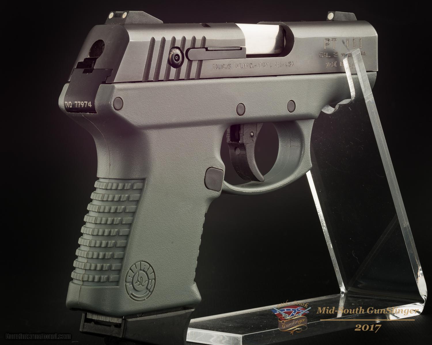 Description: Presented for sale, you will find a Taurus PT1111 Millennium chambered in 9mm Luger (9x19). This is a great carry pistol at the right price. This pistol is the size of my hand and the capacity is 10+1. This PT111 Millennium is as new. Like many guns from this collection, it has seen little if any use. I see no evidence that it has been fired, since it left the factory, and it certainly has not been carried. Included in the listing is the pictured Taurus PT111 Millennium, one (1) ten (10) round magazine, instruction manual, cleaning brushes, warranty card, cleaning cloth and the OEM case. This pistol will ship via FedEx Express Standard Overnight to the lower 48 for $49.95. Our phones are answered 24/7 by a human that speaks English. Mid-South GunSlinger Will Sell Your Guns for You!!!