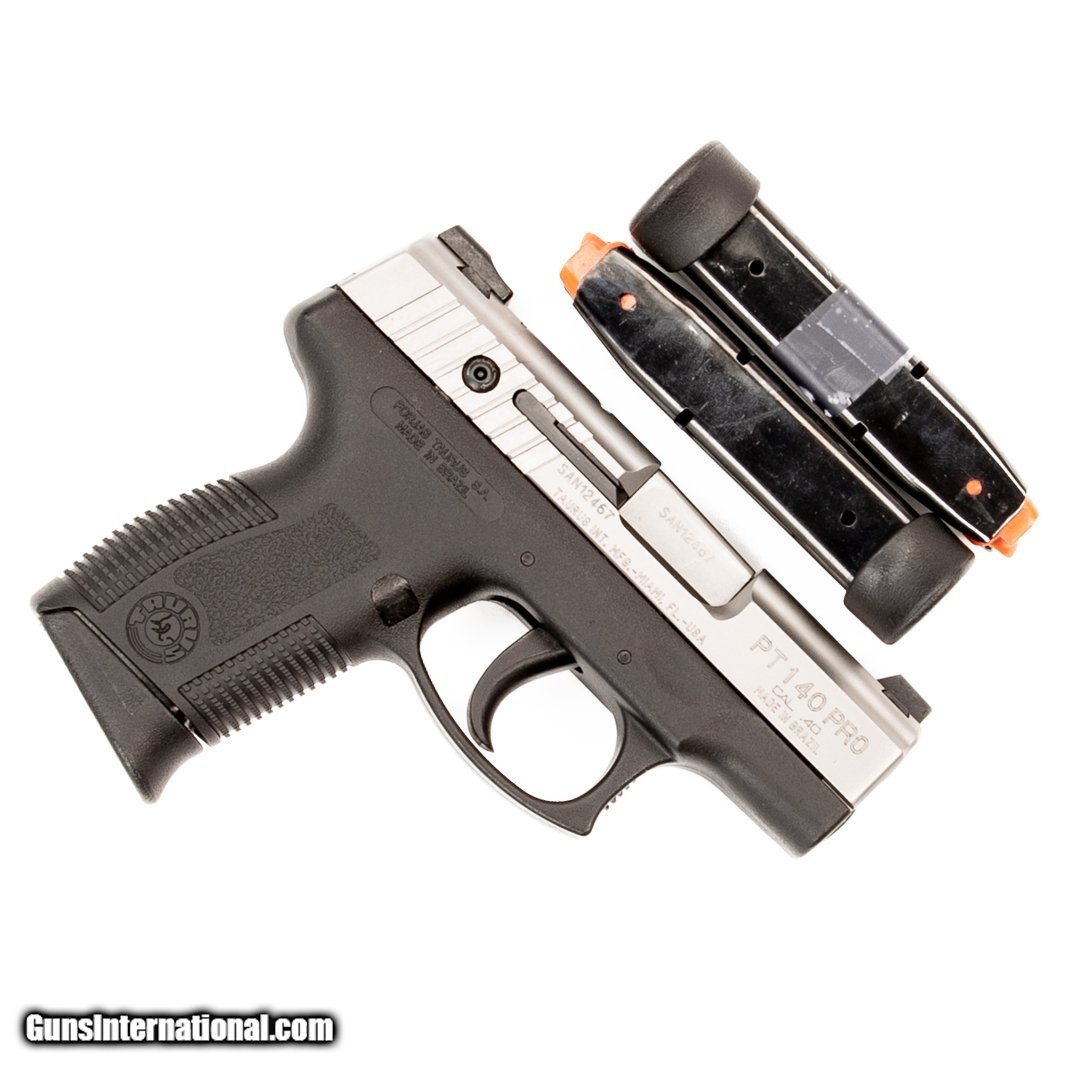 Description: Guns Listing ID: 1309420 For sale is a Taurus PT140 Pro, an easily concealable semi-automatic pistol perfect for daily carry. If you‚‚re in the market for an affordably and powerful self-defense sidearm, this is a great option. 3-10 round magazines included. Get the best bang for your buck when you get a Certified Used Firearm . When you see the Certified Used stamp on any of our firearms, you can be confident that you‚‚re getting exactly what you want – a gun only in very good to excellent condition and held to the highest quality standard. All Certified Used Guns come with a ‚‚no questions asked‚‚ return policy . PLUS, ALL CERTIFIED USED GUNS SHIP F SOLD Manufacturer: TAURUS Model: PT140 PRO Caliber Info: .40 S&W Condition: Used - Non-Certified Barrels: 3.2 BARREL Finish: TWO-TONE |