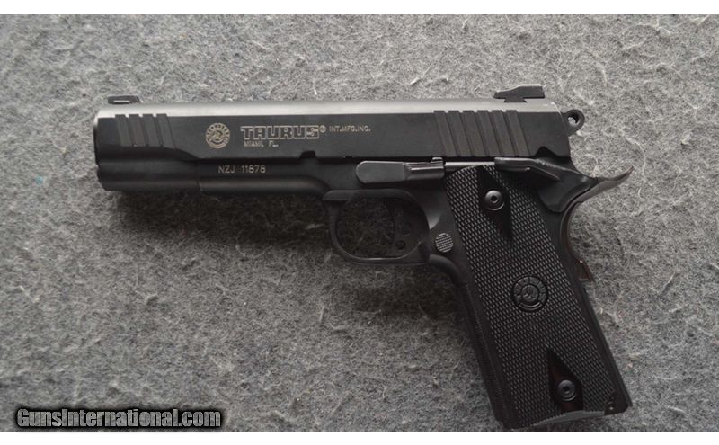 Description: This firearm is a Taurus PT1911 chambered in .45 ACP. Overall a nice gun with some scratches and handling marks. .45 ACP SOLD Chambers: Semiauto. Metal Condition: Some wear marks and scratches. Barrels: 4.5" blued barrel. Sights: Dovetail rear white dot, front white dot. Item Location: Sidney, NE |