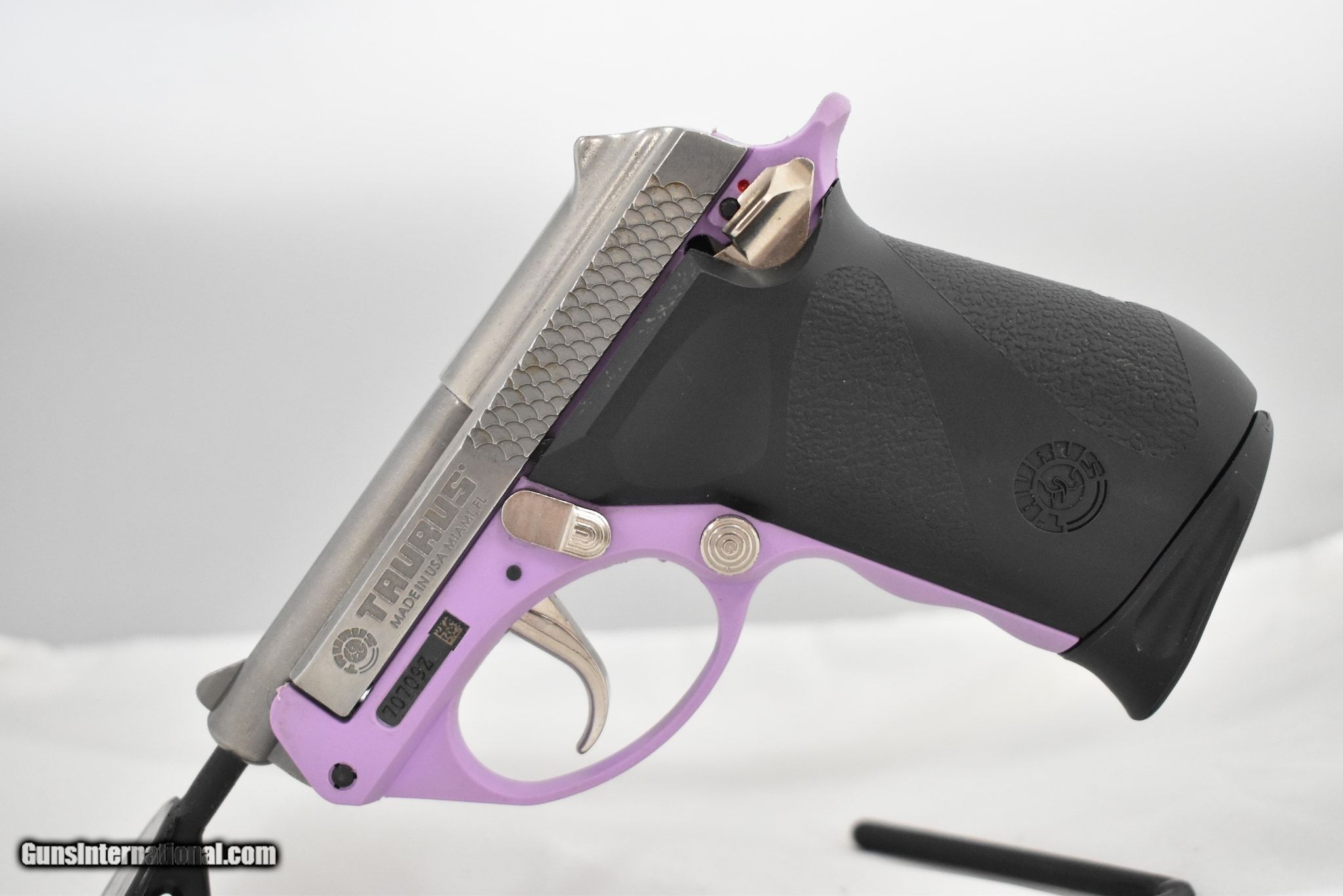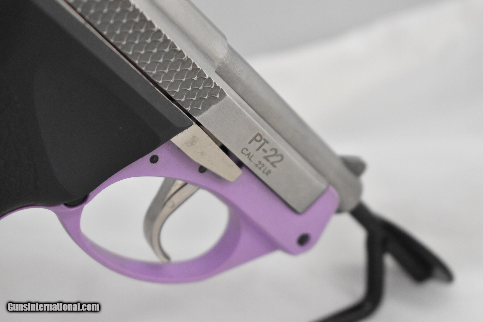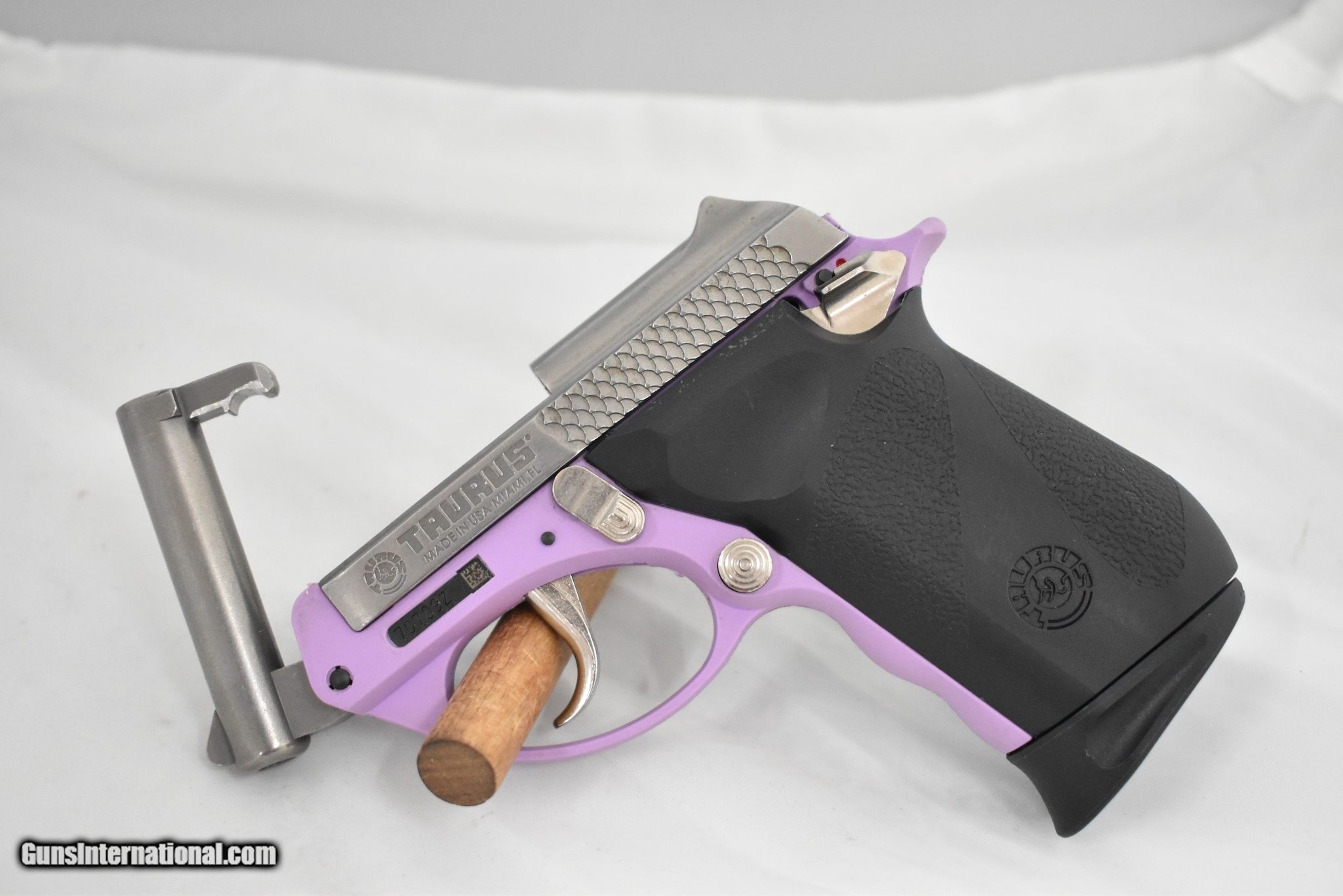 Description: Guns Listing ID: 745776 Excellent condition. Features lavender purple frame and tip up barrel. Double action only. Includes original box, manual, and keys for internal locking system. Magazine holds 8 rounds. SOLD Manufacturer: TAURUS Model: PT22 Caliber Info: .22 LR Condition: Used - Non-Certified Barrels: 2.75 BARREL Finish: LAVENDER AND STAINLESS |