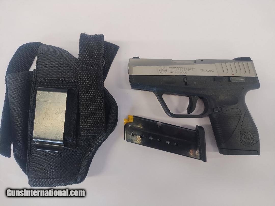 Description: Guns Listing ID: 1215557 Taurus, PT709, Striker Fired, Semi-automatic, Polymer Frame Pistol, Compact , 9MM, 3.2\" Barrel, Matte Finish, Black & Stainless, Adjustable Sights, Manual Thumb Safety, 7 Rounds, 2 Magazines HOLSTER 2 MAGS 12 Rounds Adjustable Sights Re-Strike Capability Manual Thumb Safety Product Description The Taurus PT709 series was engineered specifically for everyday carry - and it delivers. With its streamlined, ergonomic design and rugged, compact polymer frame, you‚‚ll find that PT709 pistols strike the perfect balance between comfort and confidence in any situation SOLD Manufacturer: TAURUS Model: PT709 SLIM Caliber Info: 9MM LUGER (9X19 PARA) Condition: Used - Non-Certified Barrels: 3 BARREL Finish: STAINLESS & BLACK |