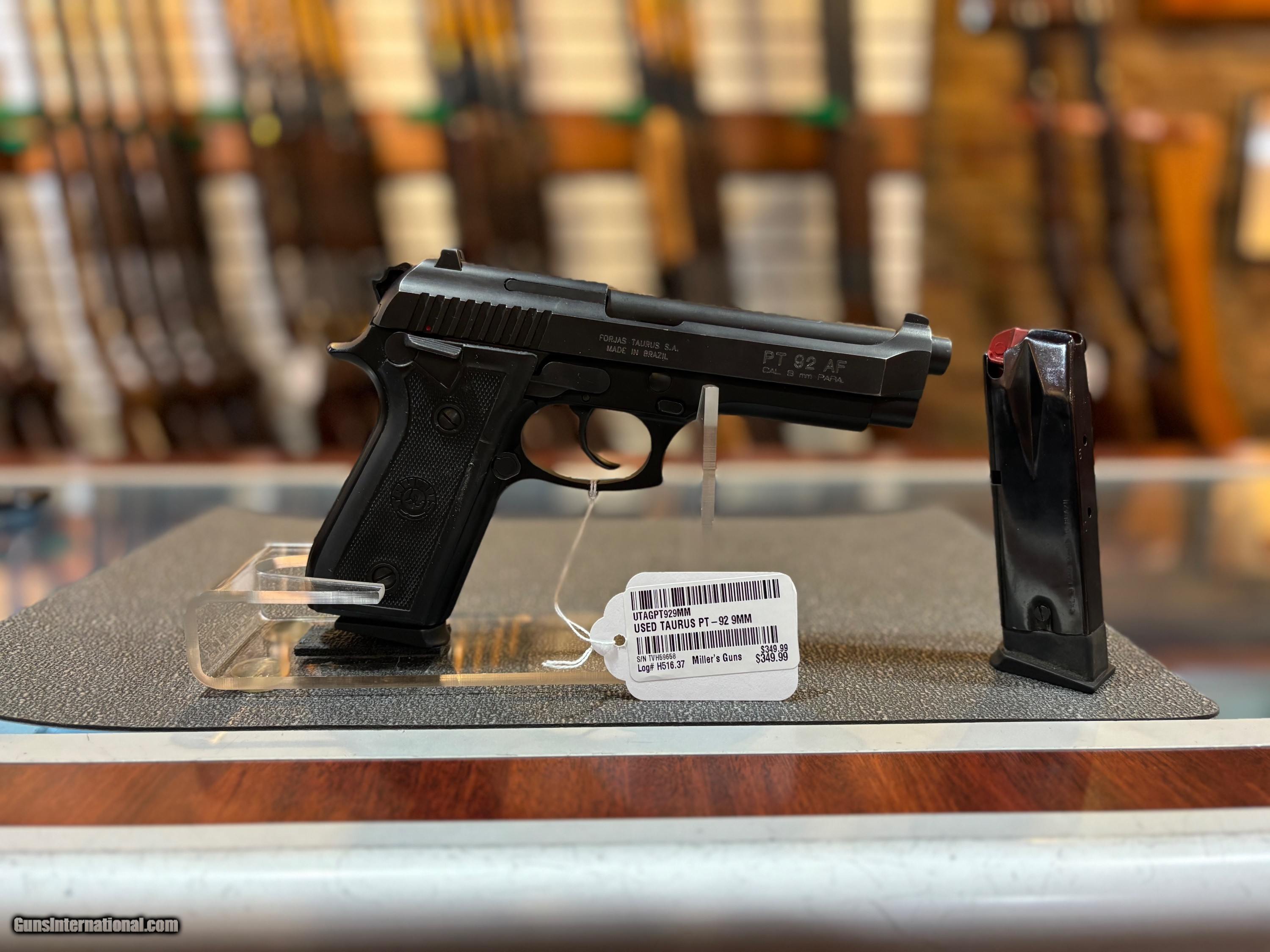Description: USED Taurus PT92AF 9mm Manual safety 17 round capacity (2) magazines included NO box or manual SOLD Handgun Caliber: 9x19mm Parabellum (9mm Luger, 9x19mm NATO) Manufacturer: Taurus Model: PT92AF Serial Number: TVH69658 Condition: Good |