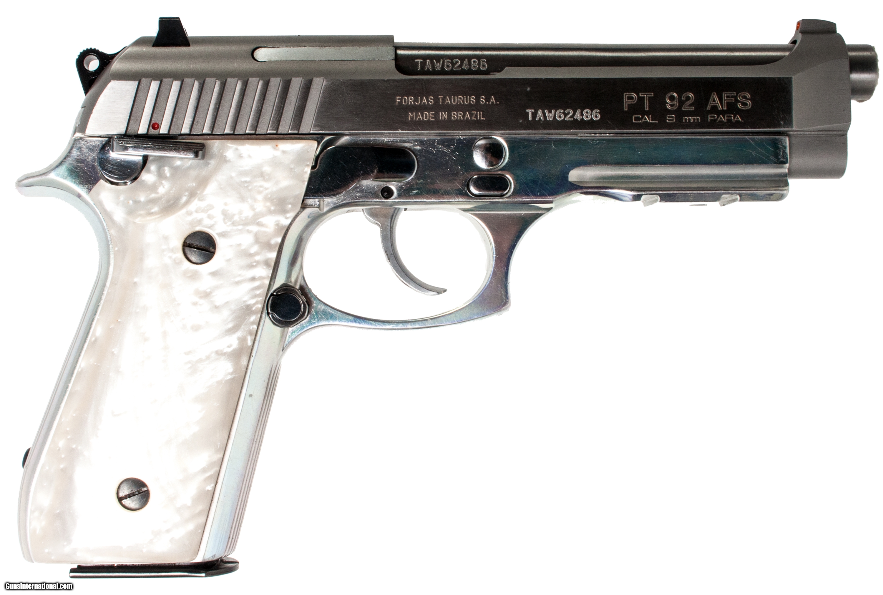 Taurus PT92 AFS chambered in 9 mm with a 5 inch barrel box and 3 extra magazines. This gun is in excellent condition and is covered by Dury's Lifetime Warranty.