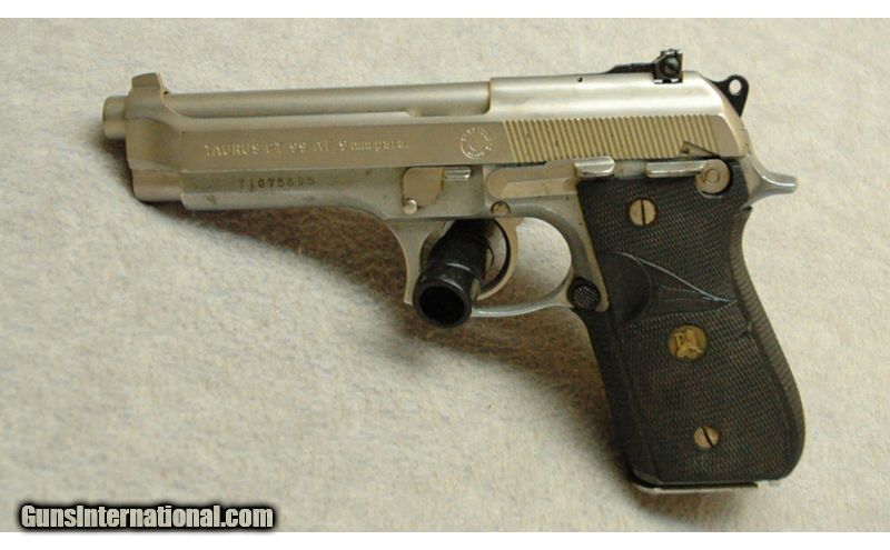 Description: Taurus Model PT92AF Pistol, 9mm. Good condition, some finish wear, small nicks and scratches. Value priced 9mm semi auto, a good choice for target practice or home defense. 9mm Luger SOLD Chambers: Semi auto Metal Condition: Good Wood Condition: Grips are good Bore Condition: Bright Barrels: 5 Triggers: Double and single action with manual safety. Butt Pad: Pachmayr grips Sights: Adjustable iron sights Item Location: La Vista, NE |