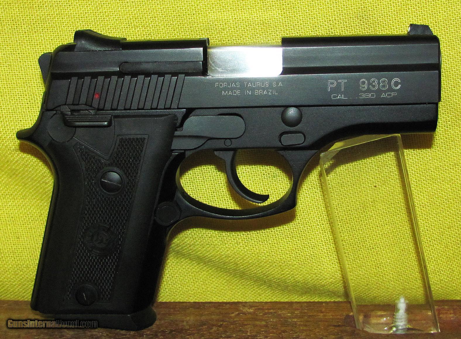 Description: TAURUS PT938C IN .380 ACP CAL., WITH 3 1/2" BARREL. COLOR BLUE. CONDITION 98% LIKE NEW. SERIAL NUMBER KRB70121. TAURUS MODEL PT938C, COMES WITH ONE FACTORY DOUBLE STACK MAGAZINE, GRIPS EXCELLENT, 98%+ FACTORY FINISH, LIKE NEW. OUR NEW STOCK # D33617. OUR OLD STOCK # YA11472 SOLD |