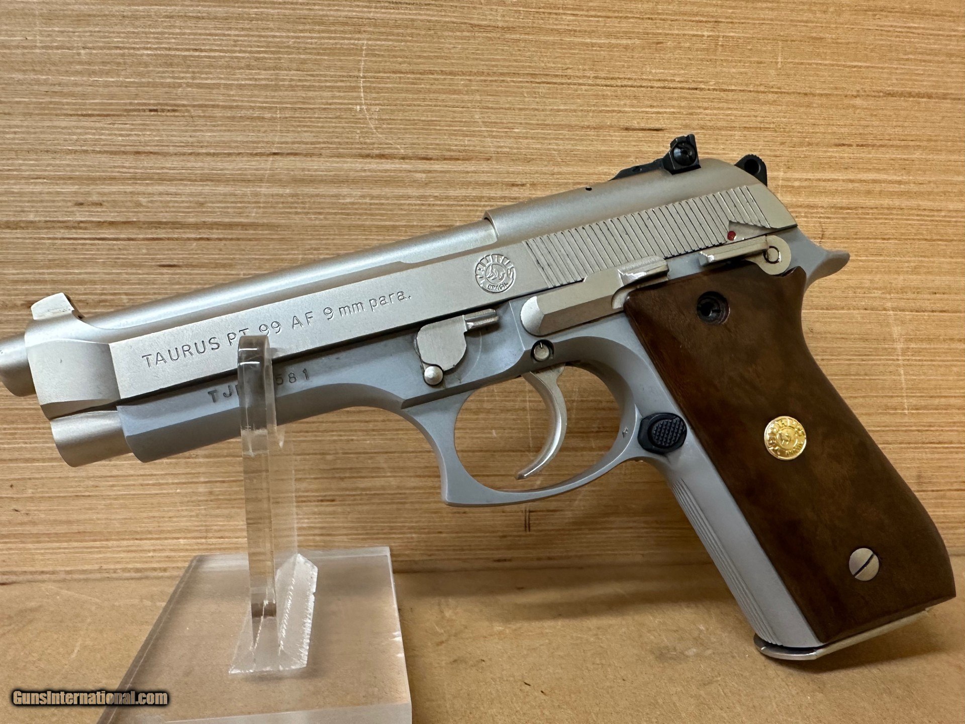 TAURUS PT99 AF 9MM SEMI-AUTO PISTOL STAINLESS, WOOD GRIPS