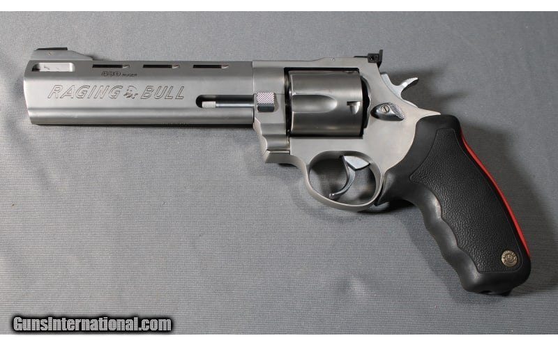 Description: Taurus Raging Bull with 6 1/2" ported barrel with full underlug. 5 round fluted cylinder with two release buttons. Rubber grips to help with recoil. Finish is very nice showing little wear. .480 Ruger SOLD Metal Condition: very good Bore Condition: bright Barrels: "6 1/2"" ported, ribbed barrel with full underlug Triggers: DA/SA Butt Pad: rubber grips Weight: 3 lb 6 oz Sights: "ramped front sight, adjustable target rear sight Item Location: Council Bluffs, IA |