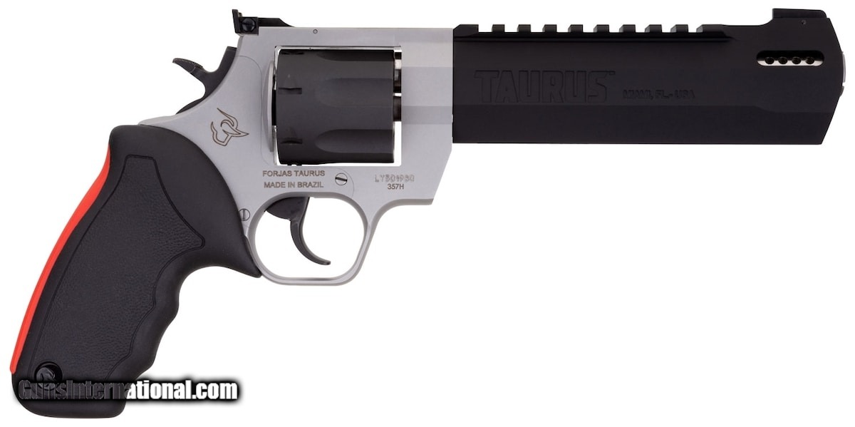 Description: Guns Listing ID: 793051 The Taurus Raging Hunter is a 454 Casull 5shot revolver. Its striking Stainless and Blue twotone finish is enough to grab the attention of any bigbore aficionado but the opticsready Picatinny rail and angular barrel design will seal the deal. The unique barrel system incorporates a steel sleeve that is inserted into an aluminum housing that cuts down on the overall weight making this a wellbalanced hunting sidearm. The exclusive cushioned insert grips on the Raging Series large frame revolvers makes shooting them comfortable and controllable. Also aiding in recoil management is the unique placement of the factorytuned porting and gas expansion chamber that is designed to disperse gases directionallyreducing muzzle lift and delivering quicker target acquisition. This builttolast revolver is a fun and effective alternative for short to medium range hunting scenarios. SOLD Manufacturer: TAURUS Model: RAGING HUNTER Caliber Info: .454 CASULL Condition: new Barrels: 6.8 BARREL Finish: BLACK |