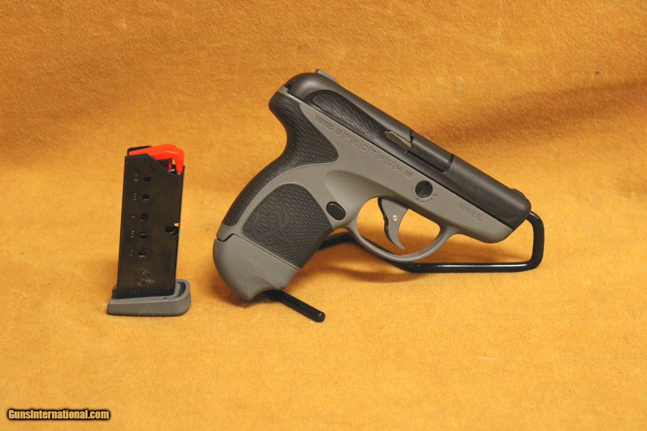 Description: Taurus' Spectrum was designed for concealed carry. This subcompact pistol weighs a hair over 10 ounces and carries six rounds in a flush-fitting magazine. The included extended magazine gives you an additional round and a little more surface area to the grip. It has integrated low profile, fixed sights, a loaded chamber indicator, and an internal lock. A distinctive feature of the Spectrum is the polymer color accents located on the slide and grip. This model has a gray polymer frame, black melonite carbon stainless steel slide, and black soft touch overmold color accents on the grip and slide. This gun comes with both the pictured magazines, but no longer has its box. It is in good condition and would serve you well as a concealed-carry option! All items are also available for sale in our brick & mortar store and are subject to prior sale. Think long, think wrong. Payment On firearms, we typically only accept credit cards or money orders/cashier's checks.