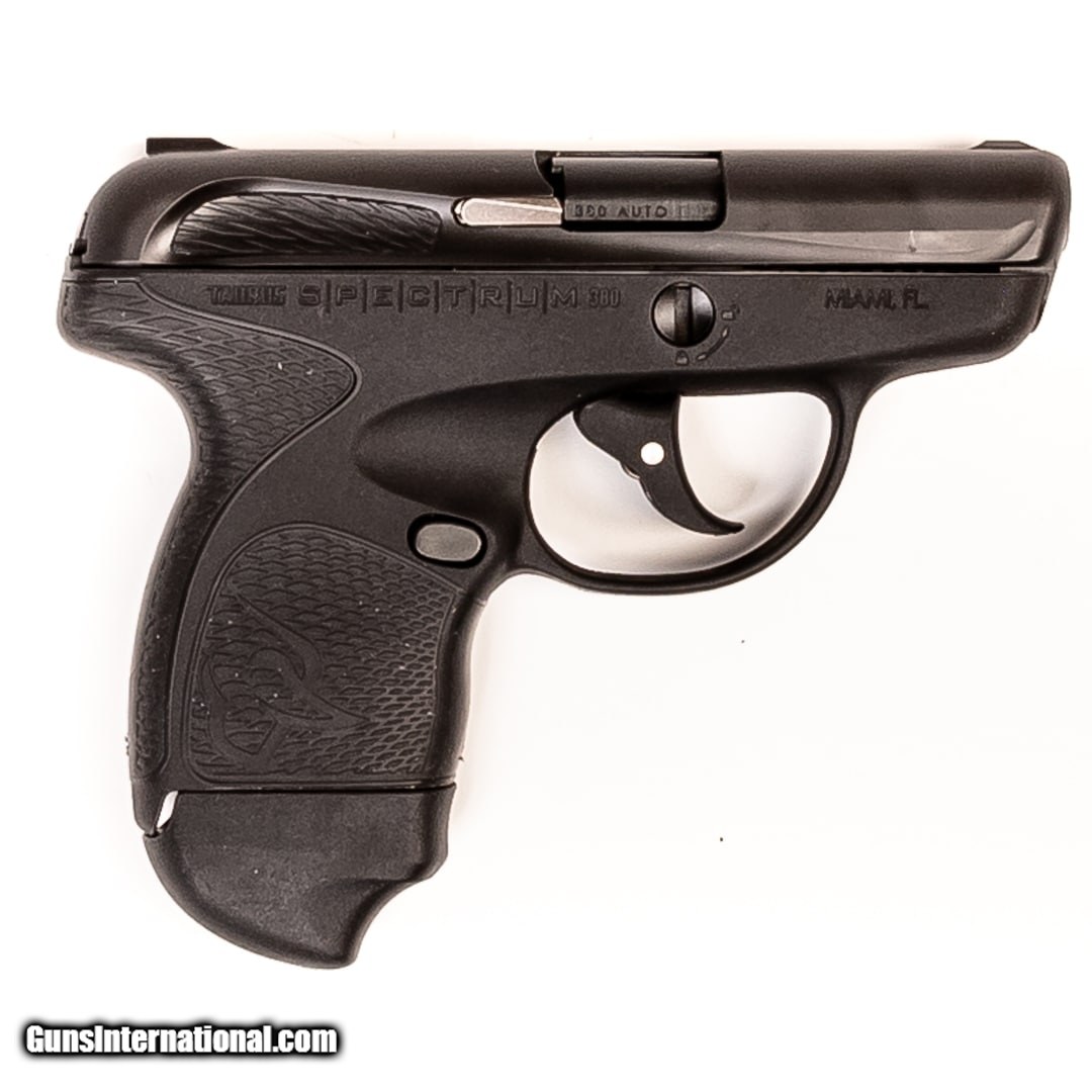 Description: Guns Listing ID: 488800 The Taurus Spectrum 380 is a semi-automatic handgun that utilizes a lightweight, compact design with an emphasis on comfort and control. It features a snag-free design and is ideal for concealed carry and close-range personal protection. Overall, this Spectrum 380 is in very good condition, with a bit of rust showing on the slide. The original box, owner‚‚s manual, and two 6-round magazines are included SOLD Manufacturer: TAURUS Model: SPECTRUM Caliber Info: .380 ACP Condition: Used - Certified Barrels: 28 BARREL Finish: BLACK |