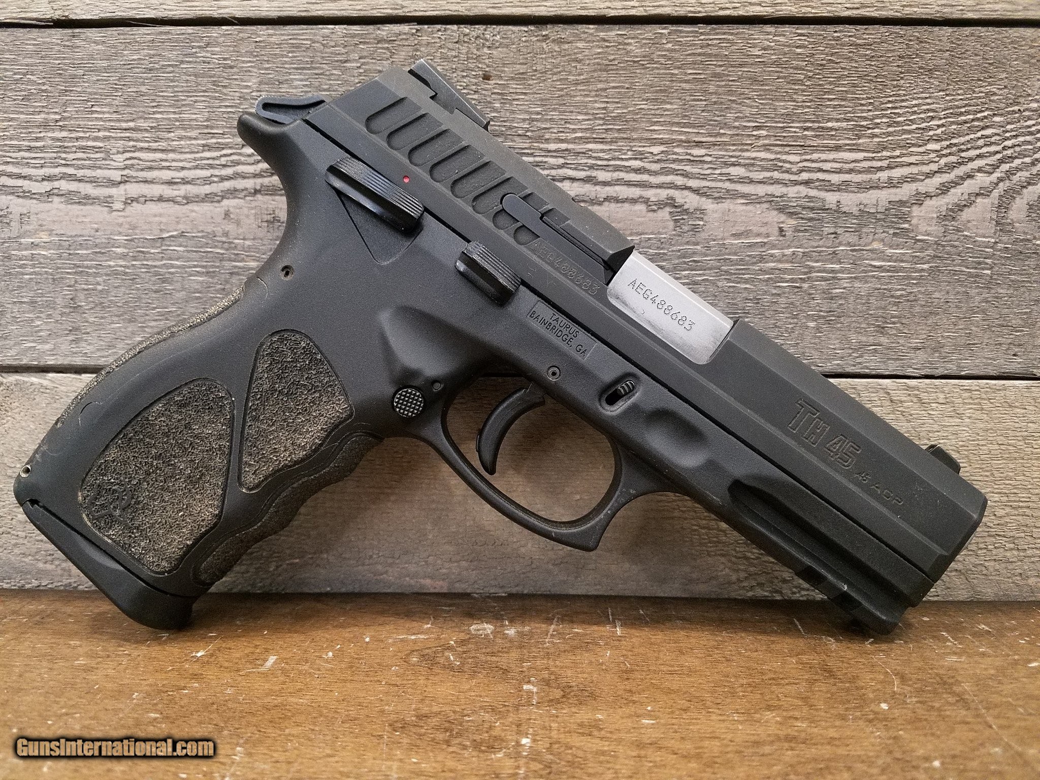 Description: Guns Listing ID: 578429 Taurus TH45 — .45 ACP The Taurus TH45 is a compact, striker-fired .45 ACP pistol engineered for reliable everyday carry and defensive use. Combining stout .45 caliber performance with refined ergonomics and modern features, the TH45 offers controllable recoil, solid capacity, and user-friendly controls in a concealable package. Key Features Striker-fired action for consistent trigger pull and reliable operation. Compact 4.25 inch barrel that balances concealability with effective ballistic performance. Ergonomic polymer frame with textured grip surfaces for secure handling and natural pointability. Low-profile sights for fast target acquisition and reduced snag during draw. Ambidextrous or reversible controls to accommodate left- and right-handed shooters. Accessory rail for lights or lasers and enhanced slide serrations for positive manipulation. Robust construction and corrosion-resistant finishes for long service life. Specifications Caliber: .45 ACP Barrel Length: 4.25 in Magazine Capacity: 13 plus 1 Frame: Polymer Slide: Steel with corrosion-resistant finish Sights: Low-profile, factory standard Overall Length: Approximately 7.5 in depending on configuration Weight: Approximately 25 to 30 ounces unloaded depending on configuration and materials UPC: No UPC available Part Number: No part number provided Compact, powerful, and built for dependable carry, the Taurus TH45 delivers classic .45 ACP performance in a modern, concealable platform. The above listing description was produced with the assistance of AI. While accuracy is our goal, errors may occur. Please contact us with any questions before or purchasing. CONDITION: Condition is determined as visible with the naked eye. We have not used a bore scope or any other special tools. If you have a specific question that I have not covered, please feel free to contact me. I have done my best to capture any visible marks or imperfections on the photos. • Barrel and Action Finish: Very Good • Stock or Grip Finish: Good • Barrel: Very Good • Sights: Good • Magazines: Good - (2) 13 round magazine included. • Box: Good • Overall: Good SOLD Manufacturer: TAURUS Model: TH45 Caliber Info: .45 ACP Condition: Used - Non-Certified Barrels: 4.25" BARREL Action: SEMI AUTOMATIC |