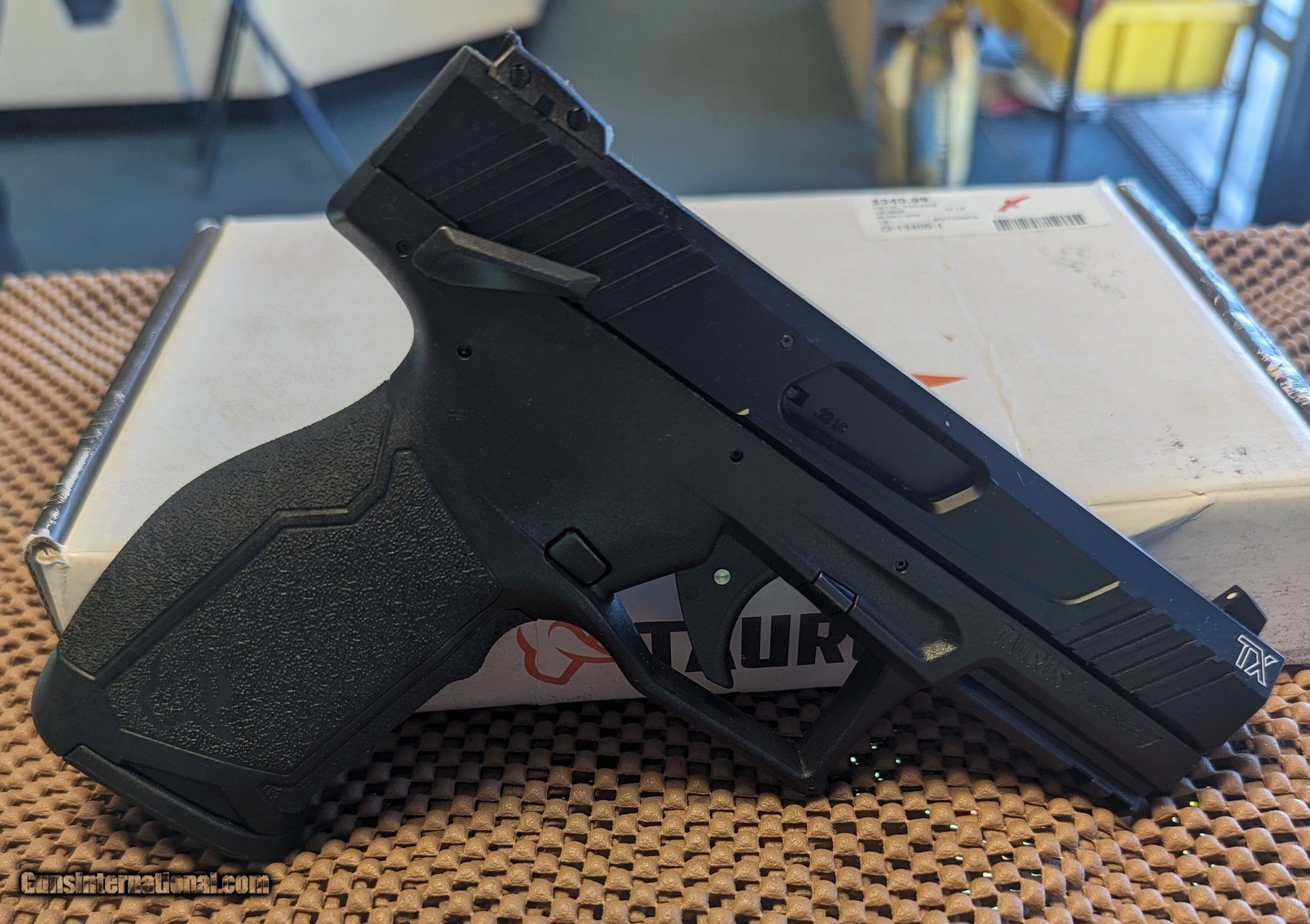 Description: Guns Listing ID: 1300418 Taurus TX22 .22 LR Semiautomatic Rimfire Pistol. Boasting a barrel length of 4.10 inches and a capacity of 16 rounds. This single action-only pistol comes equipped with a fixed white dot front sight and adjustable rear sight. With two included magazines, a Picatinny rail, and a threaded barrel for versatility, the TX22 stands ready. Designed with a full-size frame made of durable polymer and an aluminum slide, it measures 7.06 inches in length, 5.44 inches in height, and 1.25 inches in width, providing a comfortable grip and handling. Featuring a manual safety, striker block, and trigger safety. SOLD Manufacturer: TAURUS Model: TX 22 Caliber Info: .22 LR Condition: Used - Non-Certified Barrels: 4.1 BARREL Finish: BLACK |