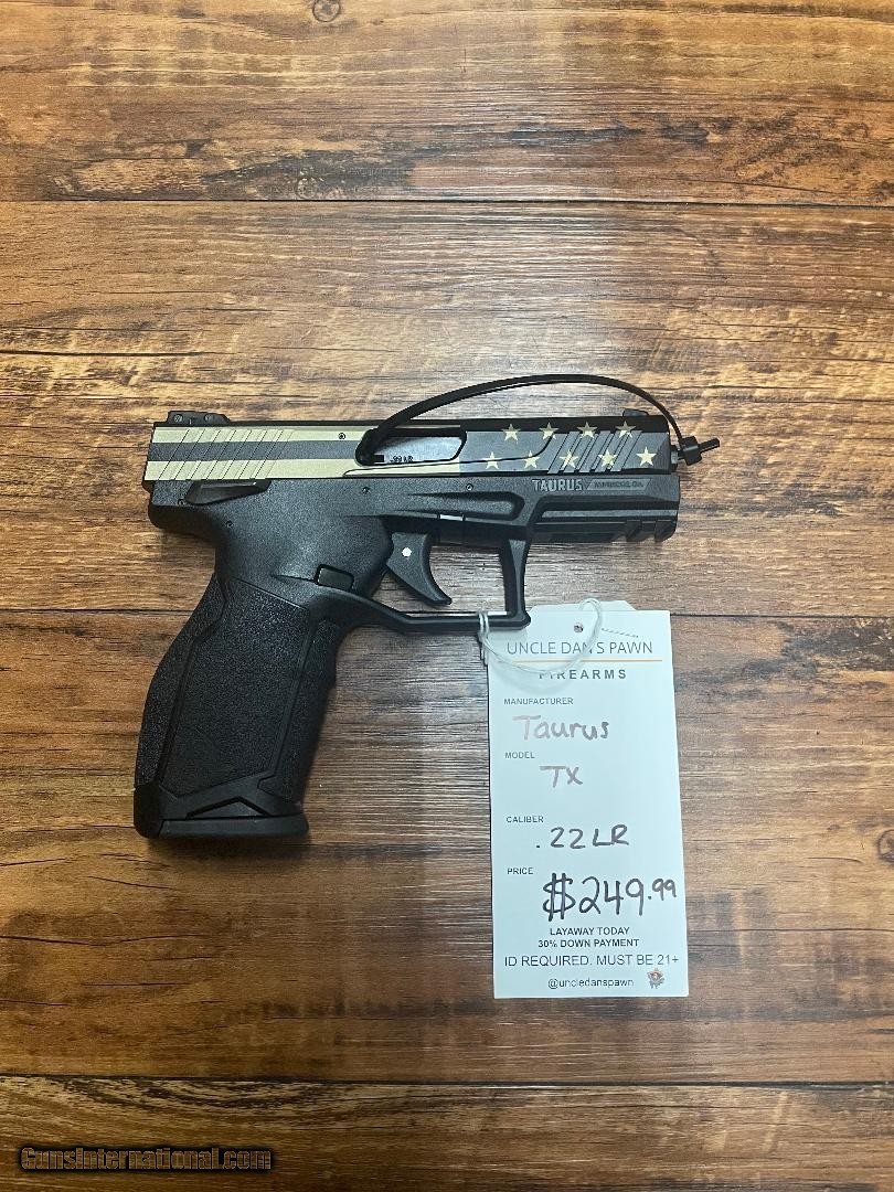 Description: Guns Listing ID: 557403 TAURUS TX .22 LR SOLD Manufacturer: TAURUS Model: TX Caliber Info: .22 LR Condition: Used - Non-Certified Barrels: 4" BARREL Action: SEMI AUTOMATIC Finish: custom |
