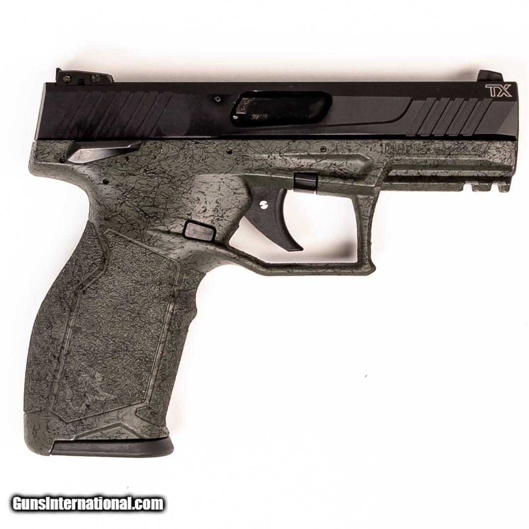 Description: Guns Listing ID: 503149 The TX22 is a semi-automatic handgun dubbed by Taurus as \"the most advanced 22 LR rimfire pistol on the market.\" It is made to deliver performance like a custom competition pistol at a price that‚‚s much more affordable. It features a polymer frame, ergonomic grip, manual and trigger safety, easy-to-use sights, and a short and smooth trigger pull thanks to the precision-designed Taurus Pittman Trigger System (PTS). This Taurus TX comes with the owner‚‚s manual and two 16-round magazine SOLD Manufacturer: TAURUS Model: TX Caliber Info: .22 LR Condition: Used - Certified Barrels: 4 BARREL Finish: BLACK & GREY |