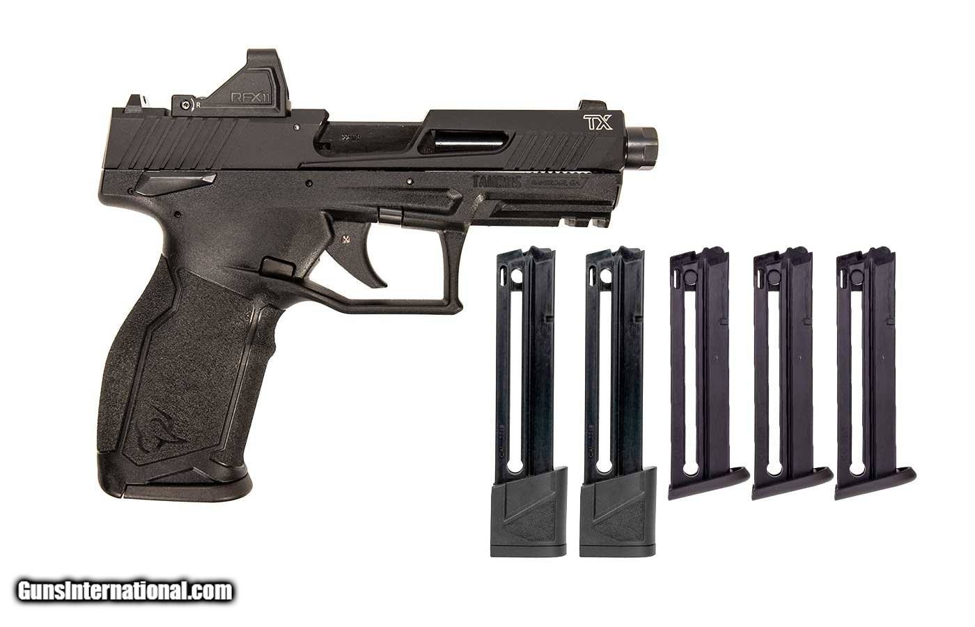 Description: Guns Listing ID: 523209 Exclusive Combo: TAURUS TX22 T.O.R.O. 22LR 4.6\" Threaded Barrel with Two 22-Round Mags, Three 16-Round Mags, and Viridian RFX11 Green Dot Unlock savings with our exclusive TAURUS TX22 T.O.R.O. Combo. Designed for peak performance and customization, this package includes everything you need for both competitive shooting and personal protection—all at an unbeatable price. TAURUS TX22 T.O.R.O. 22LR 4.6\" Threaded Barrel - Taurus Performance Trigger System (PTS): Offers unmatched control and comfort. - Enhanced Iron Sights: For improved target acquisition. - MIL-STD-1913 Accessory Rail: Allows for versatile customization. - Threaded Barrel: Perfect for suppressor integration. - Proprietary Slide Lightening Cuts: Agility without compromise. - Magazine Capacity: Includes two 22-round magazines and three 16-round magazines, ideal for extended shooting sessions. Viridian RFX11 Green Dot Enhance your aiming precision with the Viridian RFX11 Green Dot, designed to work seamlessly with the TX22 T.O.R.O.: - Lightweight Design: At a mere 0.56 ounces, the RFX11 is one of the lightest reflex sights on the market. - Viridian Green 3 MOA Dot: Offers high visibility and efficiency for quick target acquisition. - Instant-On and Auto Shut Off: Features instant-on activation (with compatible holster) and automatic shut-off to conserve battery life. - Ambient Light Sensor: Adapts the brightness according to the surrounding lighting conditions. - Long Battery Life: Over 30,000 hours of run time ensures you‚re always ready. - Shield RMSC Footprint: Ensures compatibility with the TX22 T.O.R.O., guaranteeing a perfect fit and easy installation. SOLD Manufacturer: TAURUS Model: TX22 T.O.R.O. 22LR (2x22rd + 3x16rd Mags) VIRIDIAN RFX11 GREEN DOT Caliber Info: .22 LR Condition: new Barrels: 4.6" BARREL Action: SEMI AUTOMATIC Finish: black Weight: 17.3 oz |