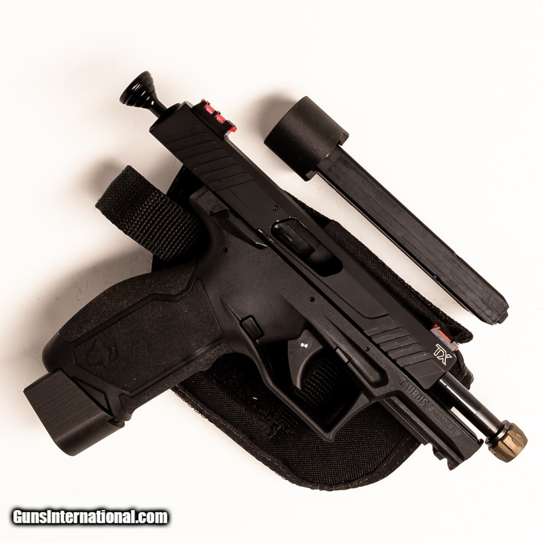 Description: Guns Listing ID: 544639 The TX22 is a semi-automatic handgun dubbed by Taurus as \"the most advanced 22LR rimfire pistol on the market.\" It is made to deliver performance like a custom competition pistol at a price that‚‚s much more affordable. A great gun at an easy-going price, it‚‚s perfect for plinking and training. This TX22 includes two 20-round extended magazines, three thread protectors, a red dot adapter, new front and rear sights, a rack assembly, and a holster. SOLD Manufacturer: TAURUS Model: TX22 Caliber Info: .22 LR Condition: Used - Certified Barrels: 4.5 BARREL Finish: BLACK |