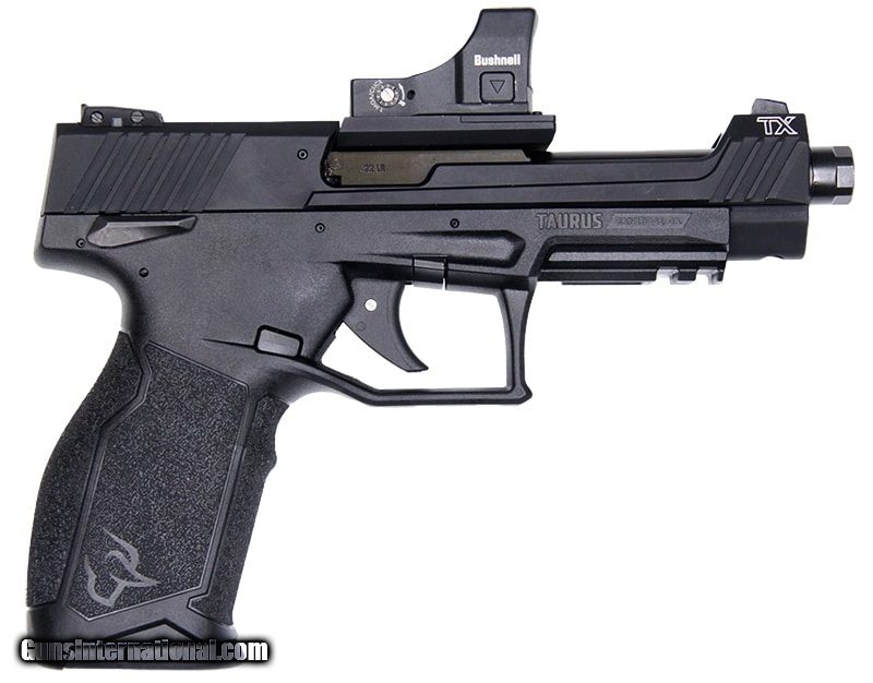 Description: Guns Listing ID: 601797 Taurus TX22, Competition, Striker Fired, Semi-automatic, Full Size, Polymer Frame Pistol, 22 LR, 5.4\" Threaded Barrel, Matte Finish, Black, Fixed Front Sight with Drift Rear Adjustable Rear Sight, Manual Safety, 16 Rounds, Includes Bushnell RXS250 Red Dot SOLD Manufacturer: TAURUS Model: TX22 Caliber Info: .22 LR Condition: new Barrels: 5.4 BARREL Finish: MATTE BLUED |