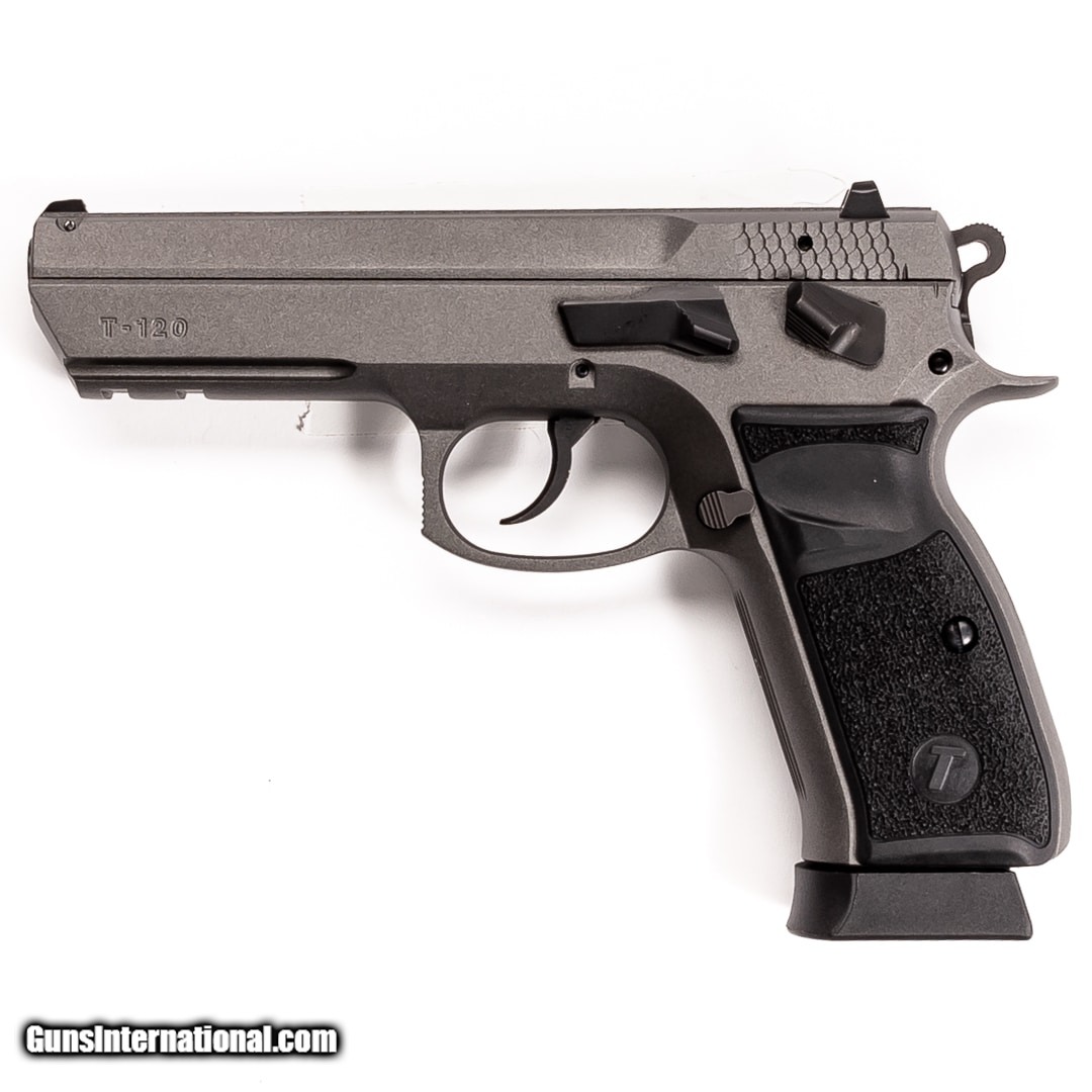 Description: Guns Listing ID: 262279 A robust yet affordable handgun, the Tristar T-120 is a semi-automatic 9mm that's well equipped for self-defense. It's a full-size version of the T-100 and was originally created for military use. It features a corrosion-resistant finish and single/double-action trigger. This model is in excellent condition and includes the original case, manual, two 15-round magazines, and one 18-round magazine. SOLD Manufacturer: TRISTAR Model: T-120 Caliber Info: 9MM LUGER (9X19 PARA) Condition: Used - Certified Barrels: 4.7 BARREL Finish: TUNGSTEN CERAKOTE |