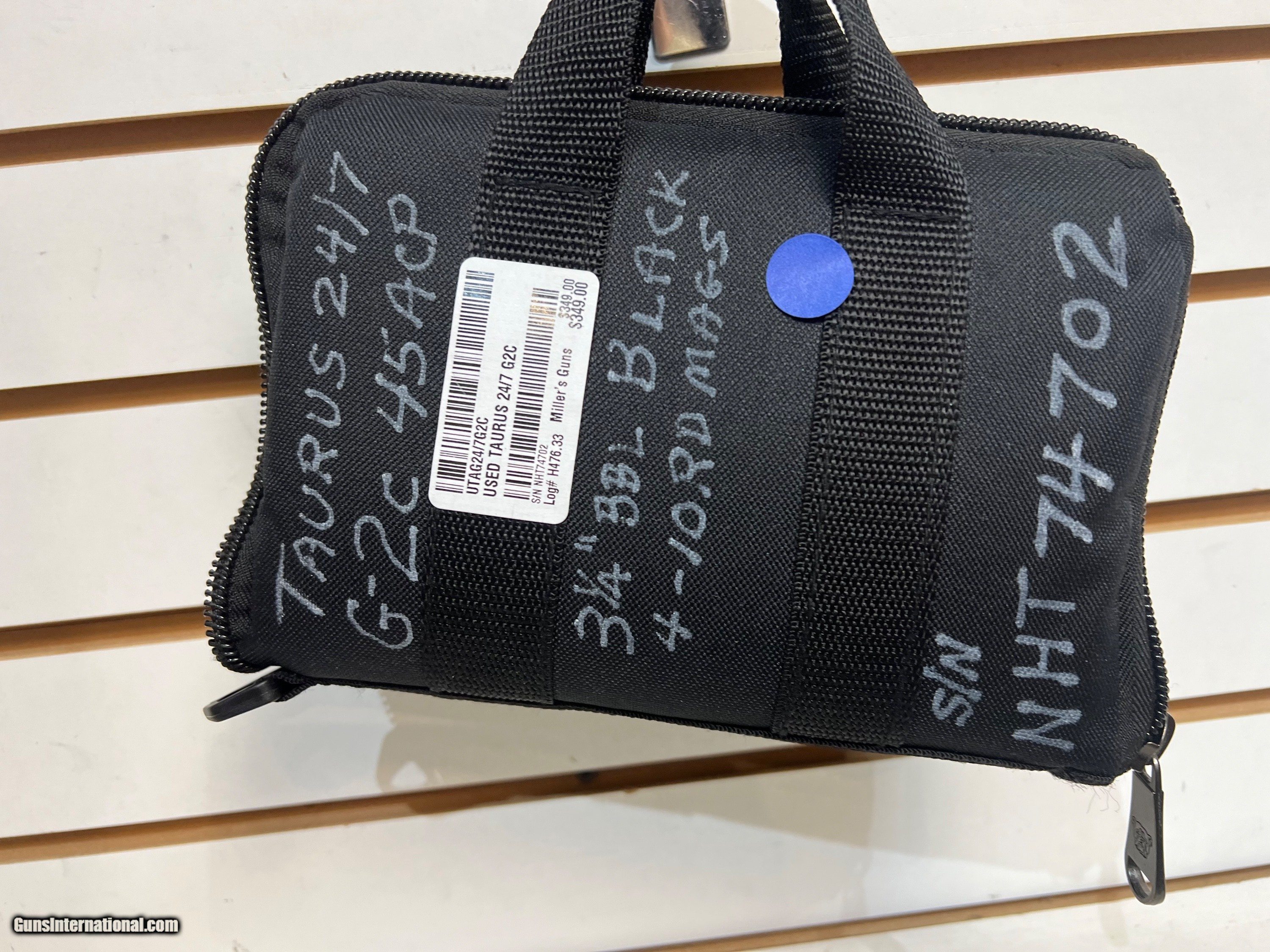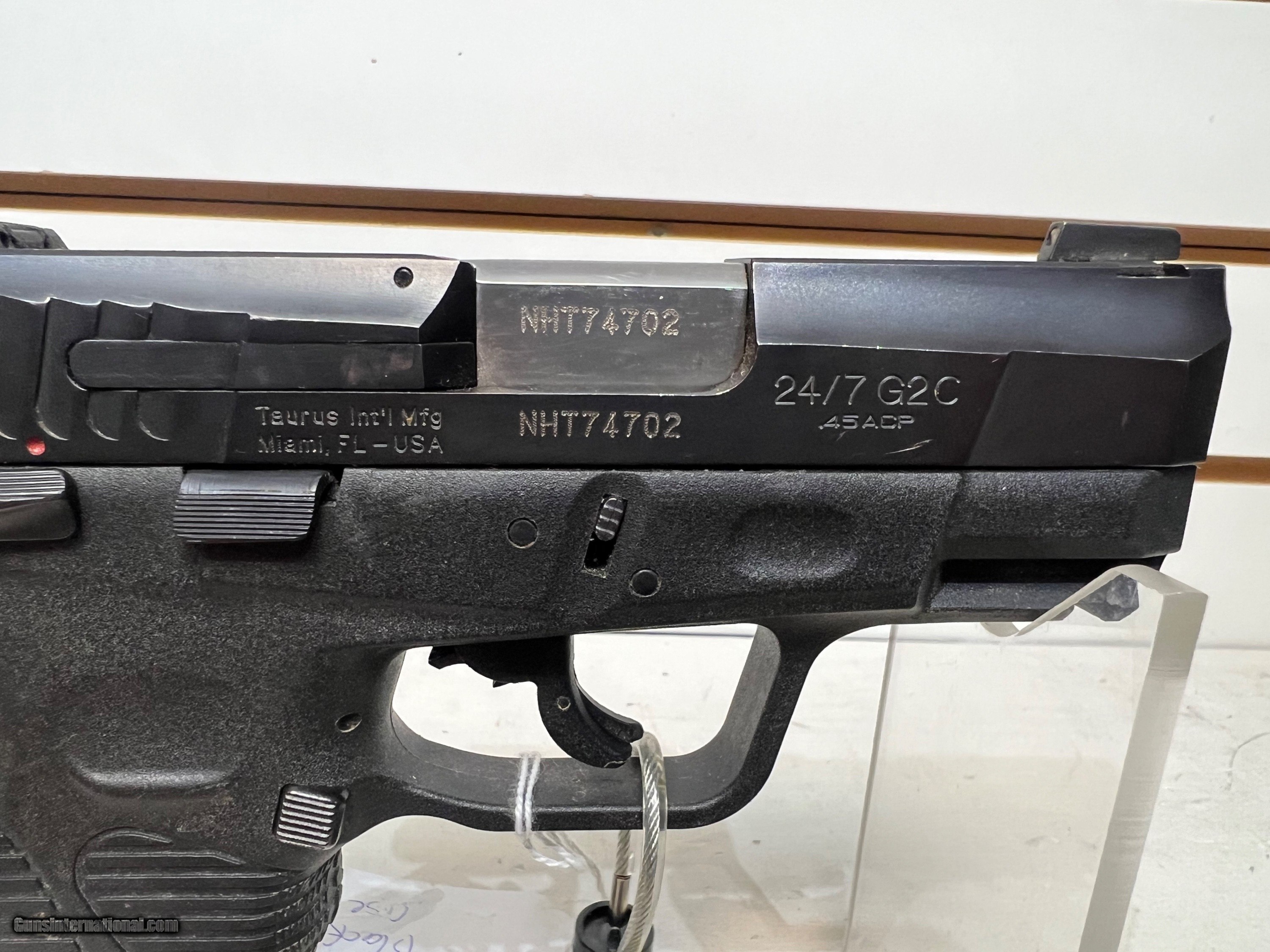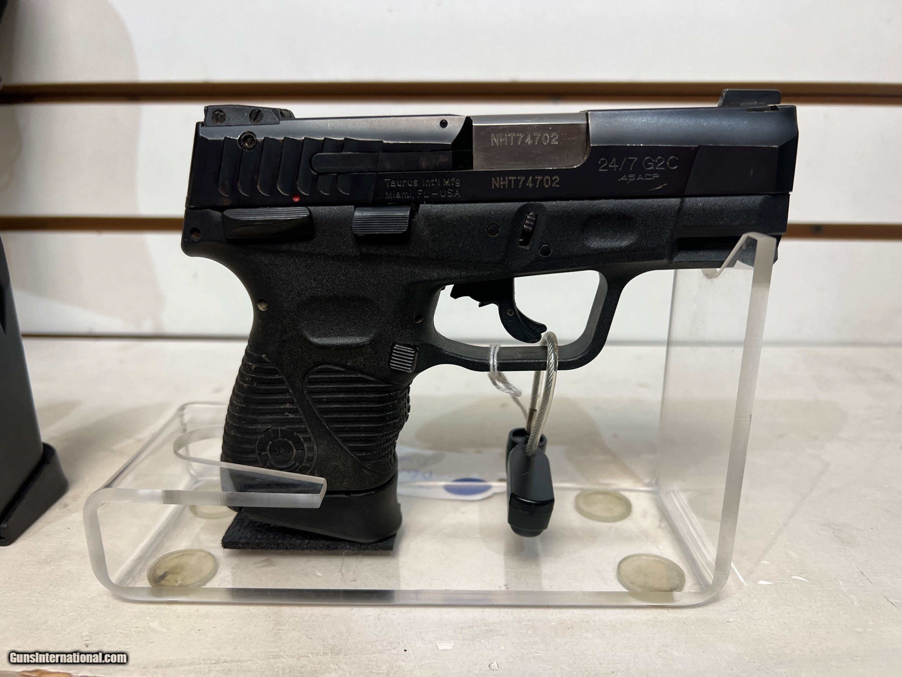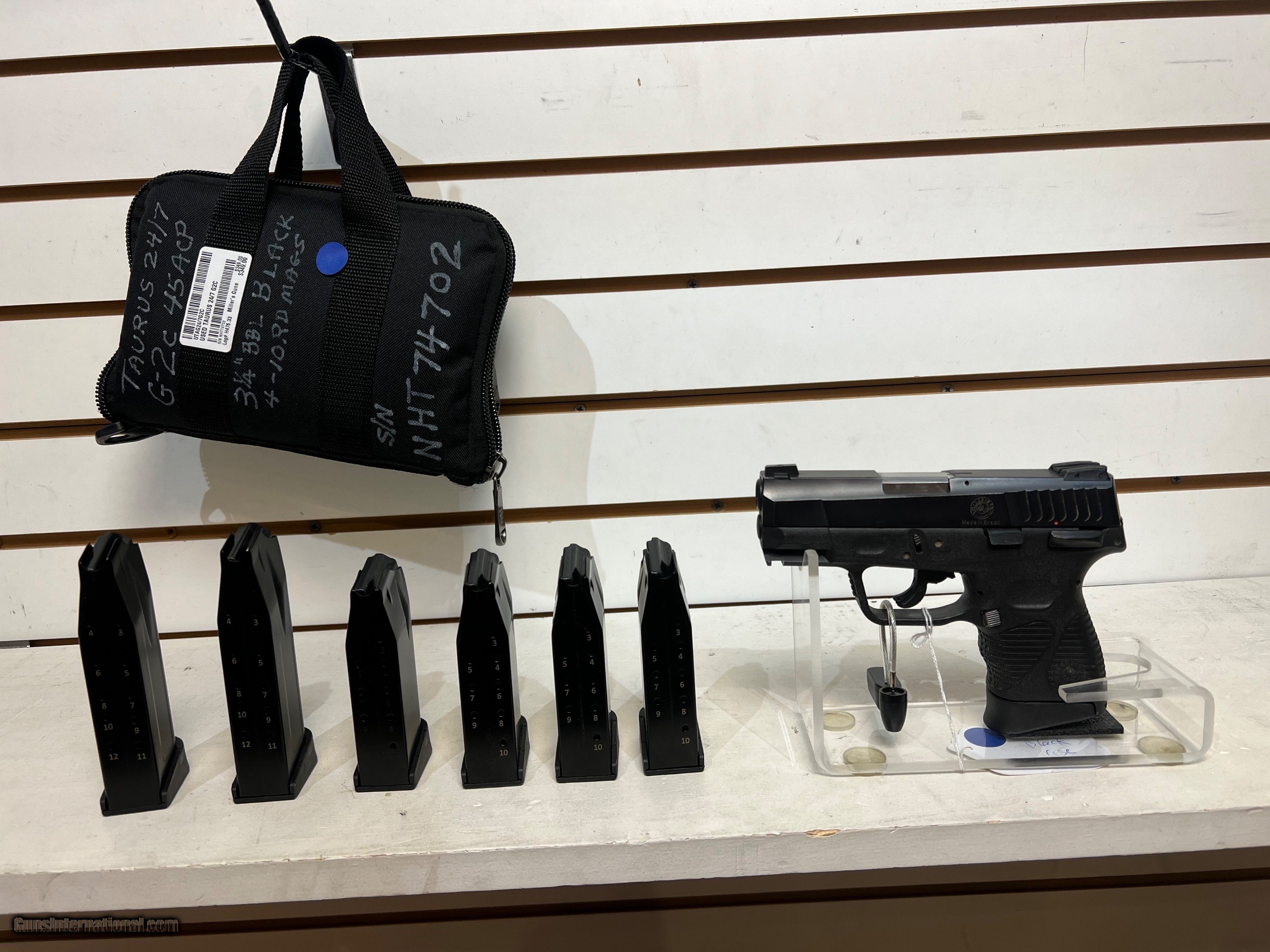 Used Taurus 24/7 G-2c 45ACP compact 3" bbl 7 10 round mags range bag good condition