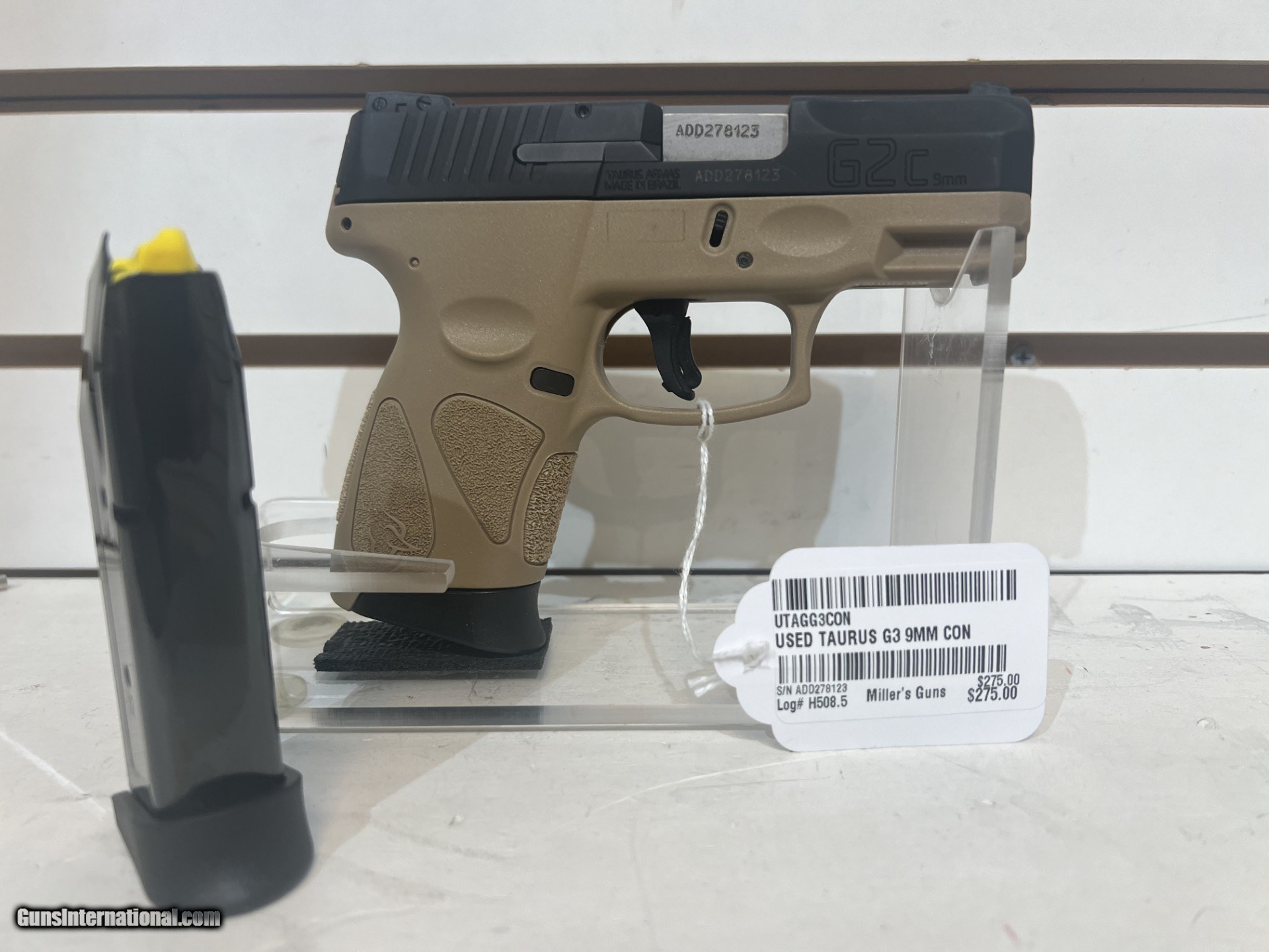 Description: Pre Owner Taurus G2C 9MM Pistol CALIBER 9MM LUGER CAPACITY 12 Rounds FRONT SIGHT Fixed REAR SIGHT Adjustable MAGAZINES INCLUDED 2 ACTION TYPE SA w/Restrike Accessory Rail FRAME SIZE Compact BARREL LENGTH 3.20 In. OVERALL LENGTH 6.30 In. OVERALL HEIGHT 5.10 In. OVERALL WIDTH 1.20 In. OVERALL WEIGHT 22.00 Oz. (Unloaded) TWIST RATE 1:10 - in RH twist GROOVES 6 SOLD Handgun Caliber: 9x19mm Parabellum (9mm Luger, 9x19mm NATO) Manufacturer: Taurus Model: G2C Serial Number: ADD278123 Barrel Length: 3.20 Condition: Very Good |