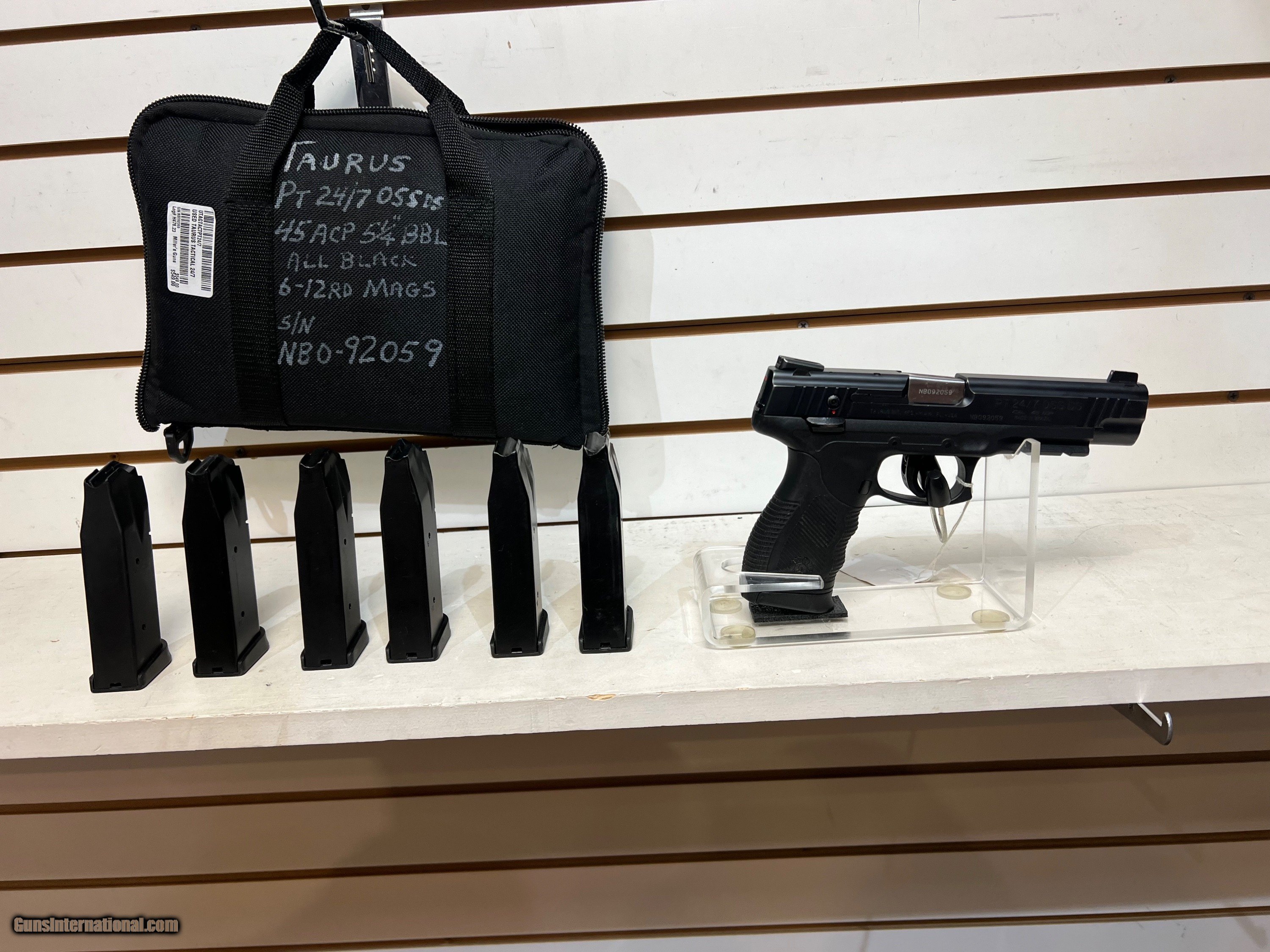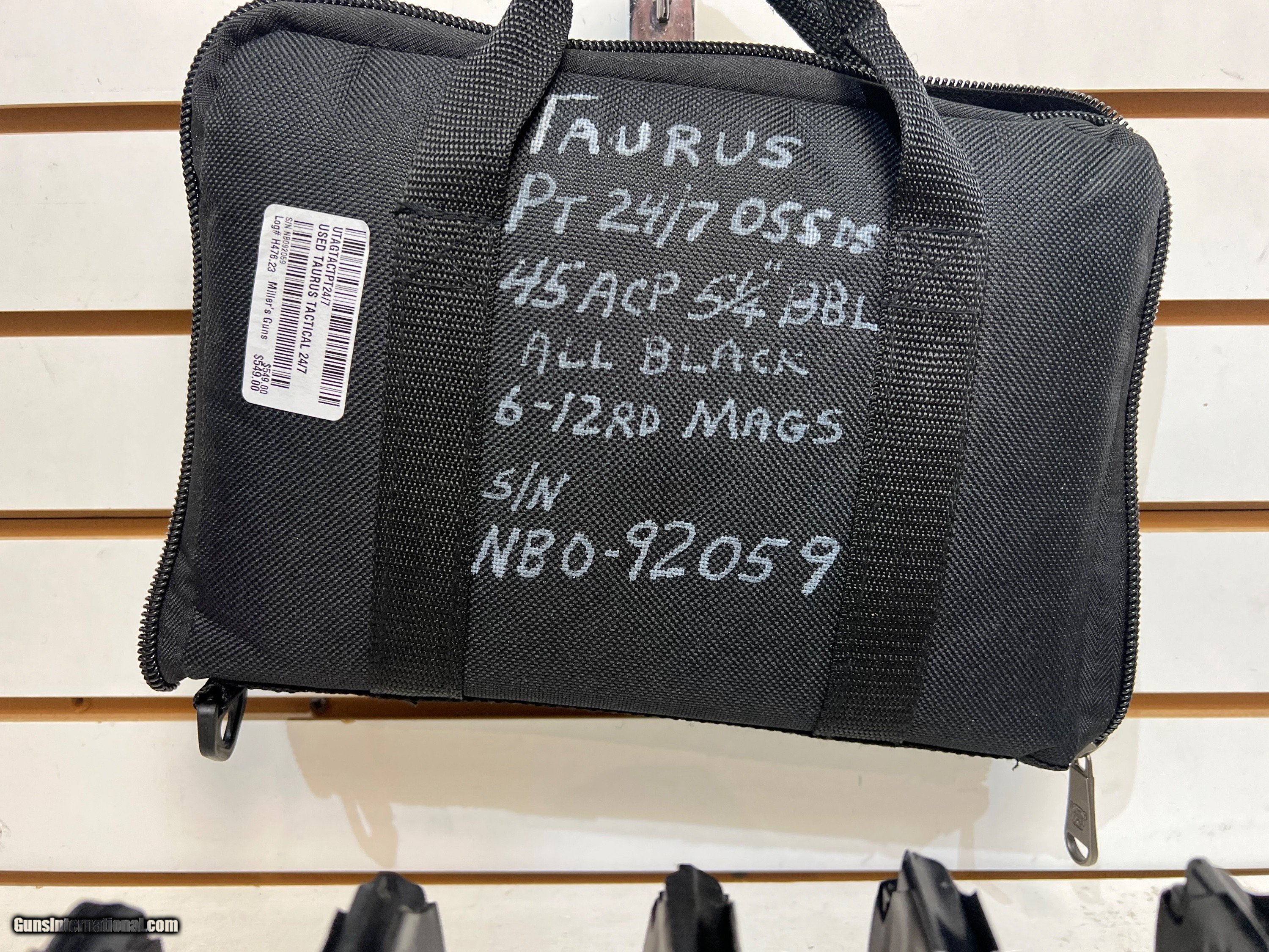 Description: Used TAURUS PT-24/7 LONG SLIDE DS 9MM BLK TENNIFER 7 12 rnd mags range bag good condition Firearm Specifications - Finish: Black Tennifer - Caliber: 9mm - Grips: Checkered Polymer - Capacity: 17 + 1 - Weight: 32.5 oz - Barrel Length: 5.25” - Height: 5.86” - Frame: Large - Action: SA/DA - Length: 8.25” - Trigger Type: Smooth Buyer pays shipping Millers Gun Center Located in New Castle, Delaware "Home of TAX-Free shopping" No Credit Card Fees Send Gun international inquiry and then call 302-328-9747 to complete your purchase SOLD Serial Number: NB092059 |