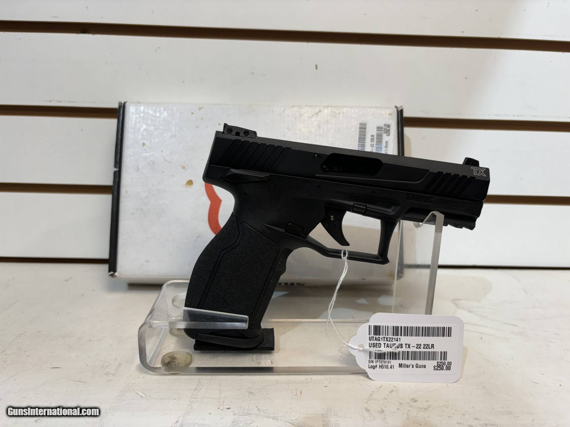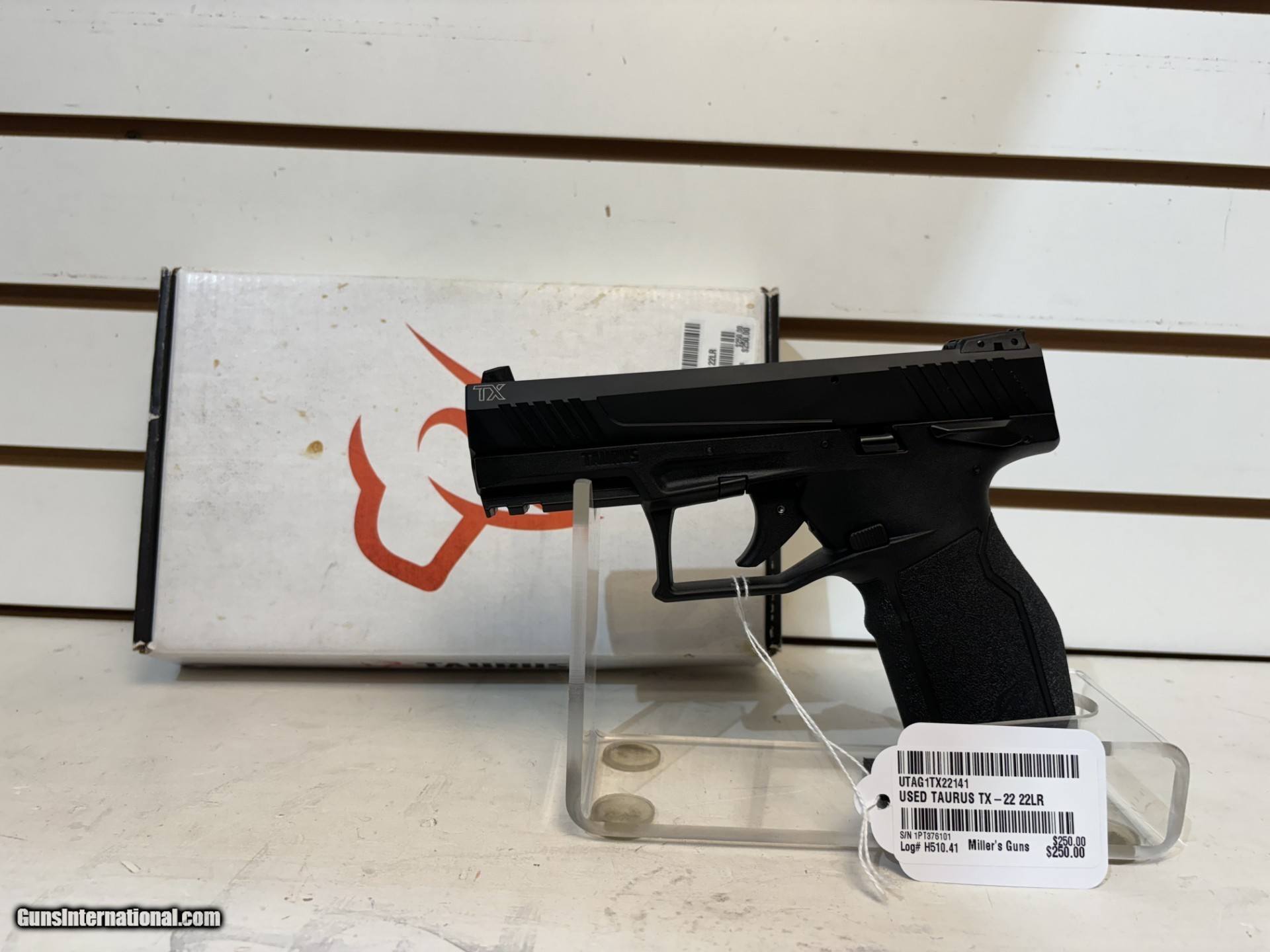 Description: USED Taurus TX22 Never fired Full size 16 round capacity (1) Magazine Thumb safety SOLD Handgun Caliber: .22 Long Rifle Manufacturer: Taurus Model: TX22 Serial Number: 1PT376101 Barrel Length: 4.1 Condition: USED- NEVER FIRED |
