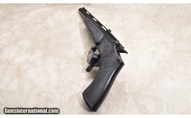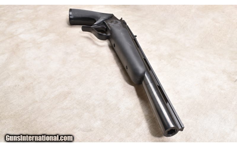 Description: Great top break single shot pistol featuring 12-inch vent rib barrel, .45 Colt and .410 chambering, and Pachmayr grips. Suitable choice for any deliberate form of pistol sport from pest control to Silhouette shooting and light hunting.` .45 Colt / 410 Gauge SOLD Chambers: "Single shot, .45 Colt or .410 bore (3-inch) Metal Condition: "Excellent, Wood Condition: Excellent. Bore Condition: Shiny and bright Barrels: "12 inches, rifled bore. Muzzle end of bore has removable straight grooves to de-spin the .410 shot charge Triggers: Factory trigger. Butt Pad: Black rubber composition grips by PACHMAYR Weight: 55 unces Sights: Ventilated rib bead and notch. Chokes: No choke Item Location: Rogers |