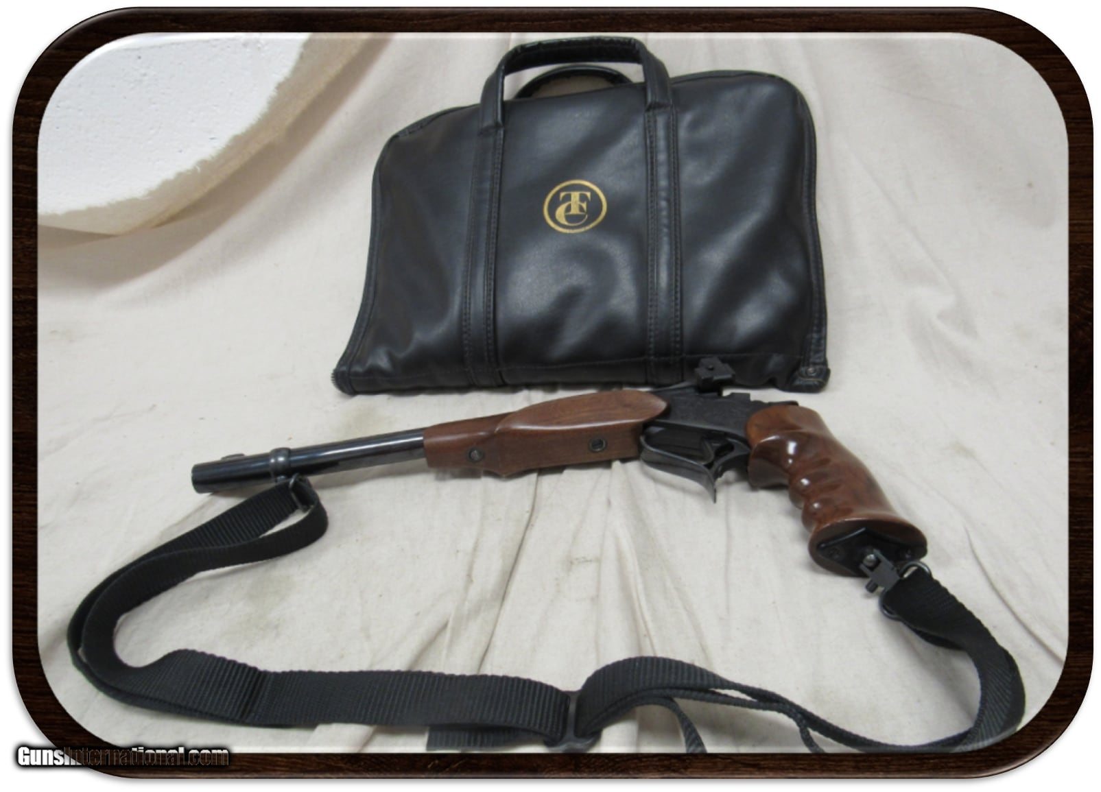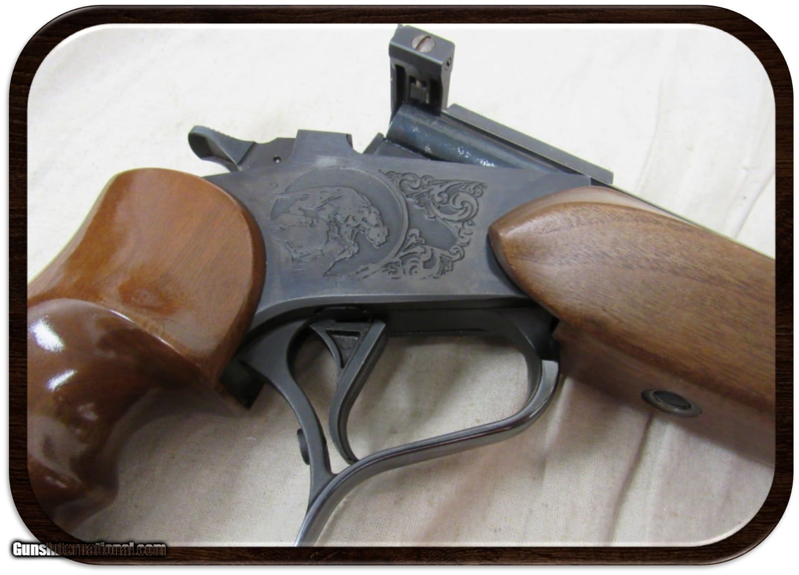 Description: Guns Listing ID: 889222 THOMPSON/CENTER CONTENDER - MULTI-CALIBER - 14\" BARREL BREAK-ACTION SINGLE-ACTION PISTOL MANUFACTURED IN 1975 S/N: 46880 This Contender Pistol comes included with 4 separate barrels, 30-30 WIN, 45 Colt, 44 Magnum, and 22 LR. The 22 LR barrel includes a Thompson/Center Lobo 1.5x magnified scope preinstalled. All together wrapped in a lined T/C leather bag for transportation and storage. The Thompson/Center Contender is a break-action single-shot pistol that was introduced in 1967 by Thompson/Center Arms. It can be chambered in cartridges from .22 Long Rifle to .45-70 Government. Warren Center, working in his basement shop in the 1960s, developed a unique, break-action, single-shot pistol. In 1965, Center joined the K.W. Thompson Tool Company and they introduced this design as the Thompson-Center Contender in 1967. Although they cost more than some hunting revolvers, the flexibility of being able to shoot multiple calibers by simply changing the barrel and sights and its higher accuracy made it popular with handgun hunters. As K.W. Thompson Tool began marketing Center‚‚s Contender pistol, the company name was changed to Thompson/Center Arms Company. Originally the chamberings were on the low end of the recoil spectrum such as .22 LR, .22 WMR, .22 Hornet, .38 Special, and .22 Remington Jet, but as Magnum calibers took off in the 1970s, the Contender quickly became very popular with shooting enthusiasts SOLD Manufacturer: THOMPSON/CENTER ARMS Model: CONTENDER 4 BARRELS W/SCOPE Caliber Info: .30-30 WIN Condition: Used - Non-Certified Barrels: 14 BARREL Finish: BLUED |