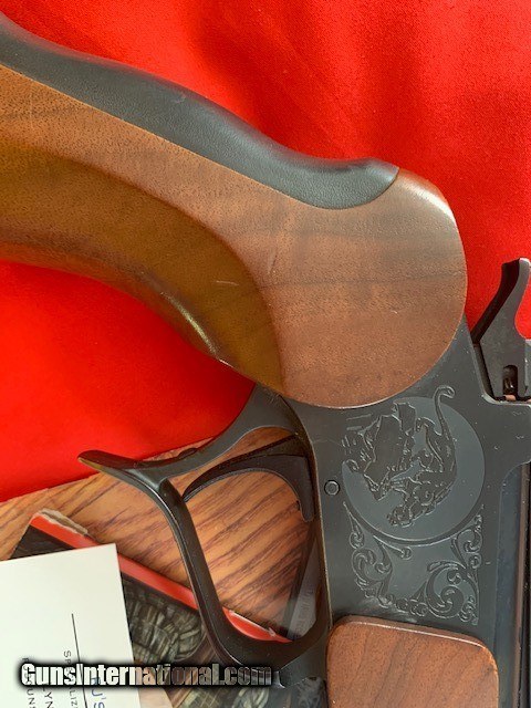 Description: SOLD Used Thompson Center Contender with 10" 45/410 vent rib barrel, wood has some scuffs as noted in pictures. Choke key included. Frame manufactured in 1989. SOLD |