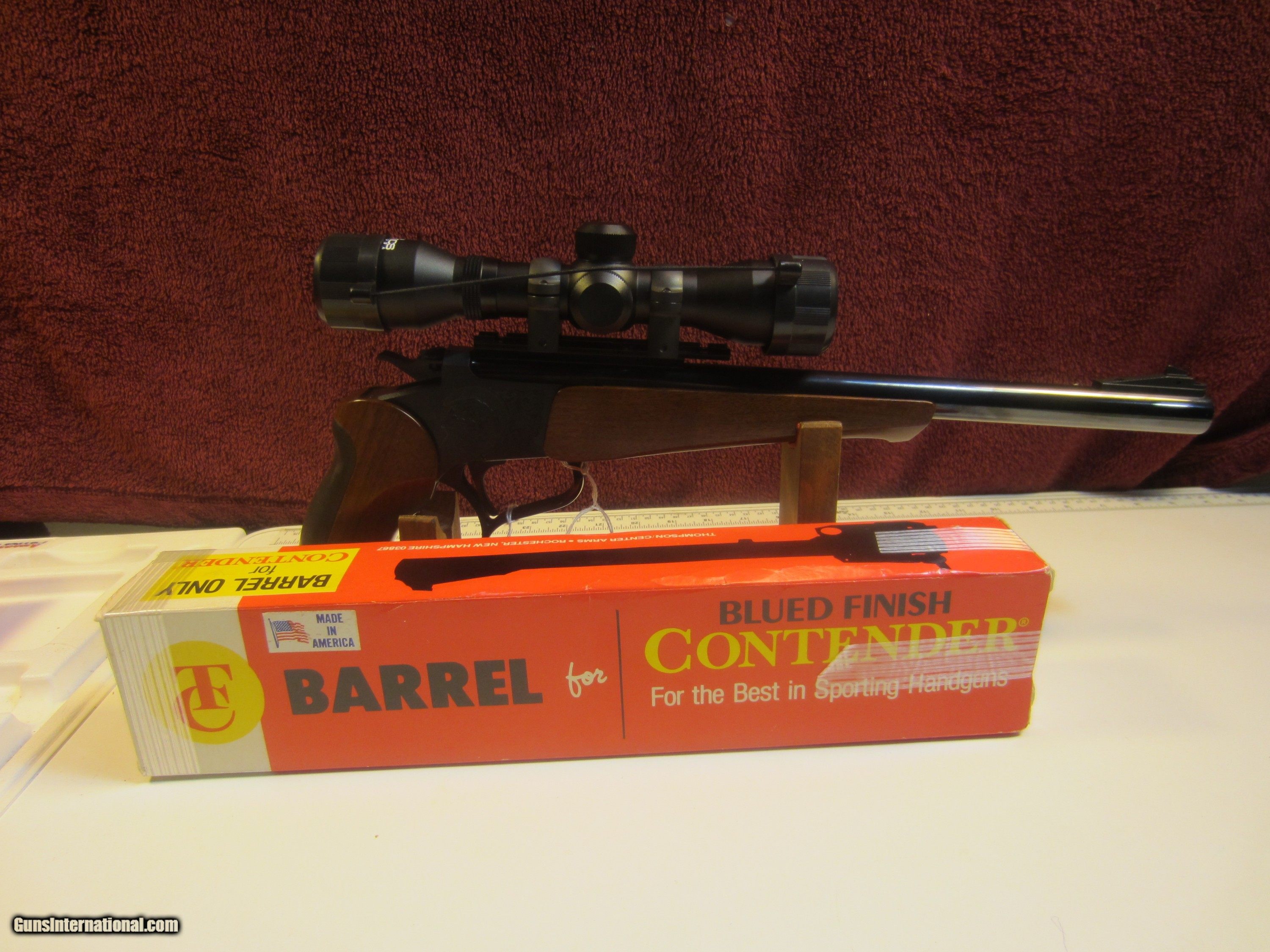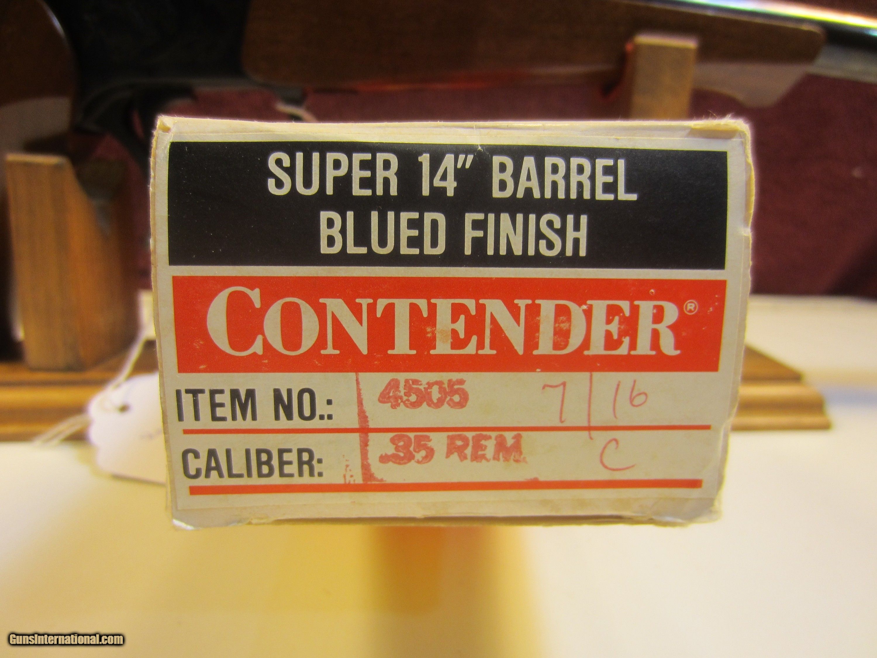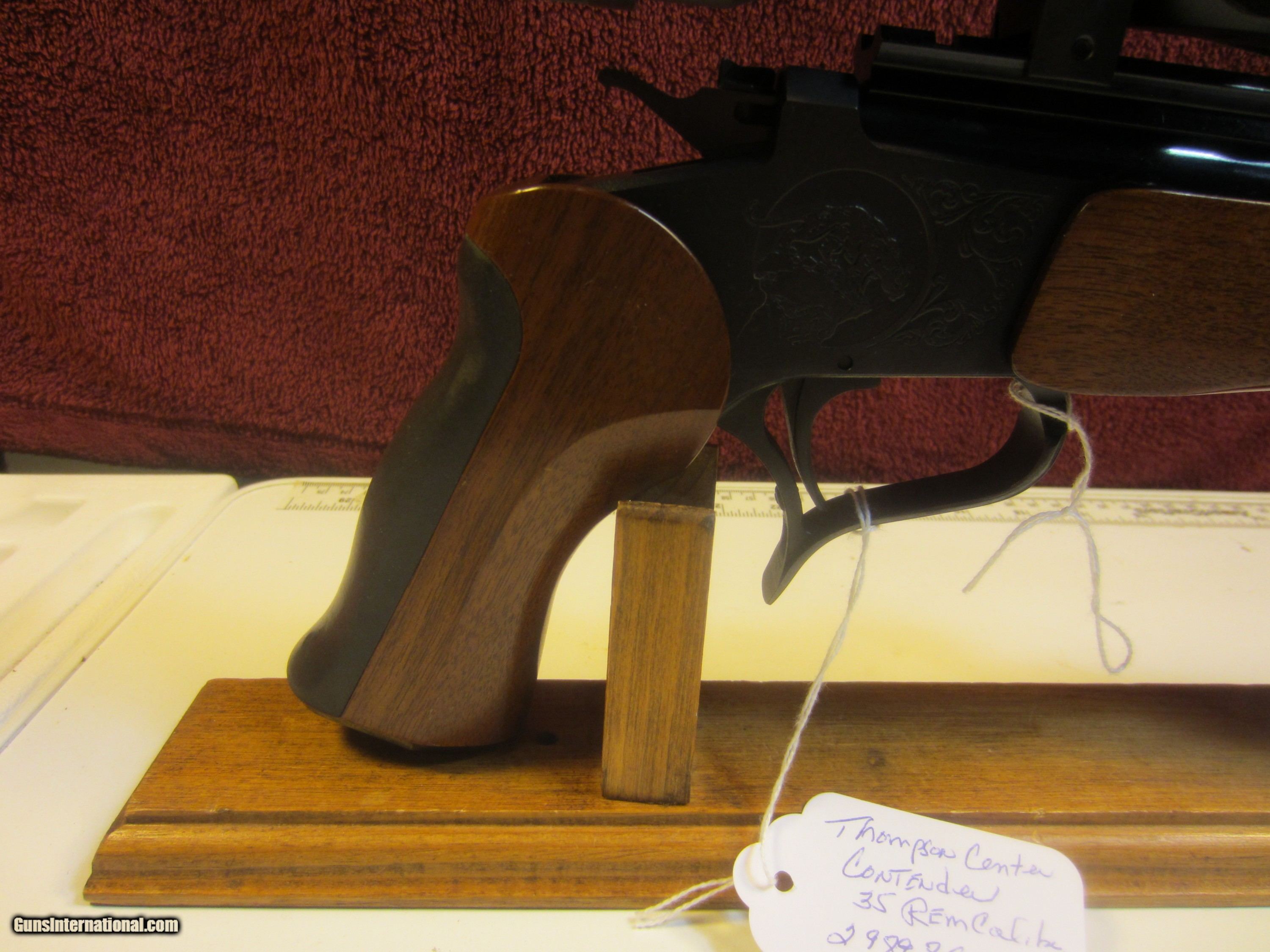 Description: THOMPSON CENTER CONTENDER BARREL LENGTH 14" CALIBER 35 REMINGTON WITH SCOPE. METAL AND WOOD LIKE NEW. WANT TO PURCHASE CALL SHOPE 716-941-3946 SERIAL NUMBER 298989 WITH ORIGINAL BARREL BOX. SOLD |