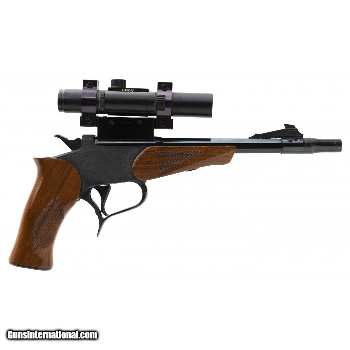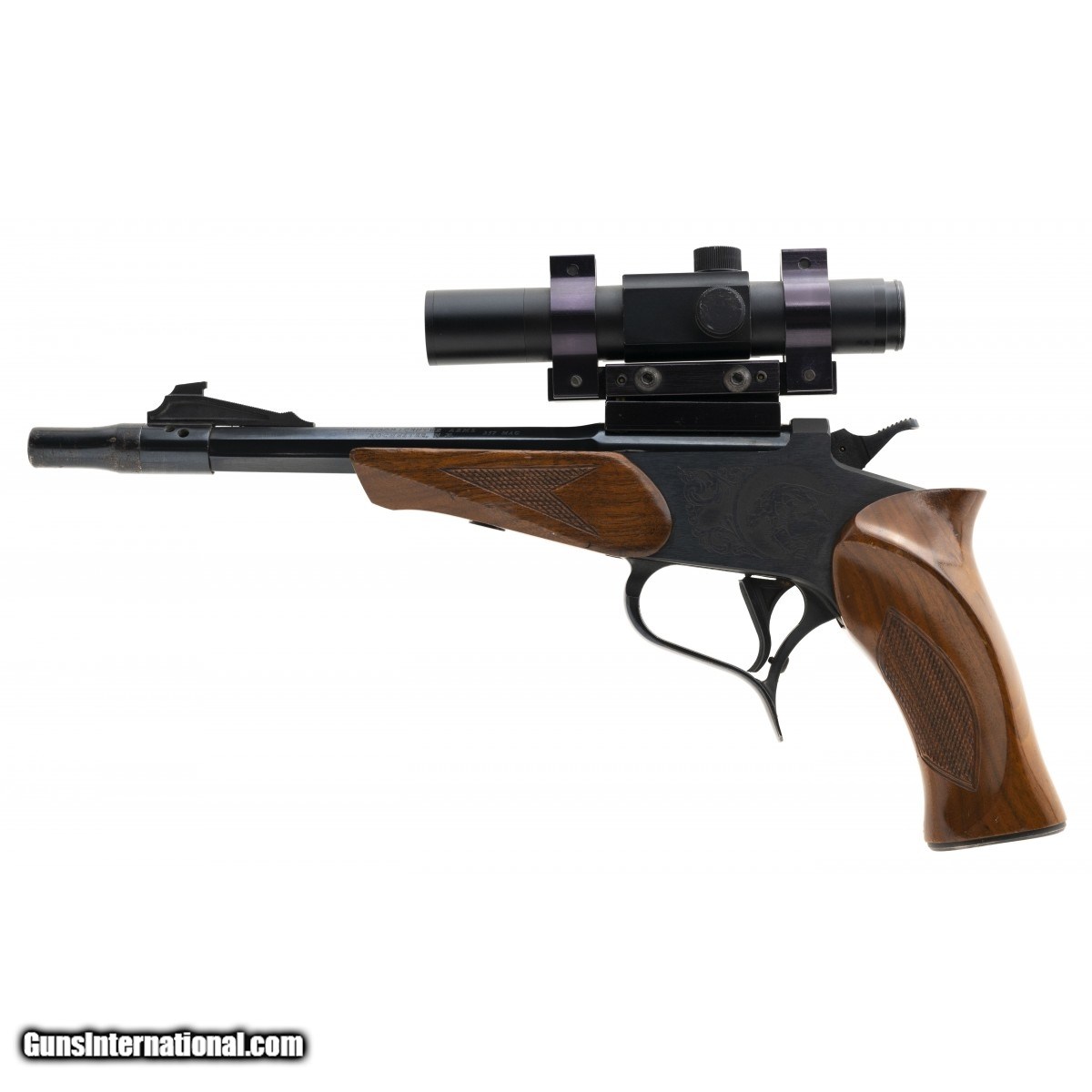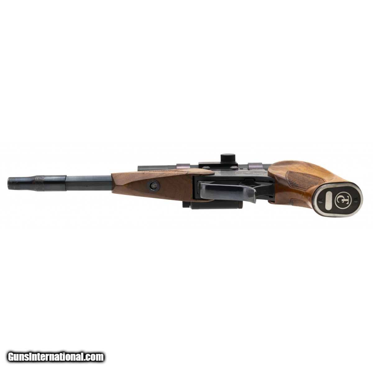 SN: 73234. Early model Contender with total of 3 barrels. Has a 8"" octagon .357 Mag barrel made for Hot Shot shotshells, an 8"" octagon .44 Mag barrel also made for Hot Shot shotshells and a 10"" heavy barrel in .30 Herret. The .357 and .44 barrels will also shoot regular .357 Mag and .44 Mag ammo. The .357 barrel has a red dot optic that is not operational, probably needs a new battery. Comes with a choke wrench to remove the Hot Shot chokes from the .357 and .44 barrels. An interesting set, all cased together.