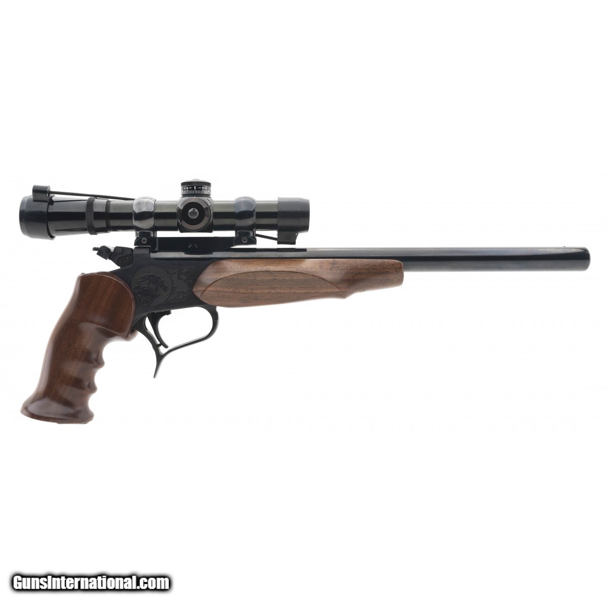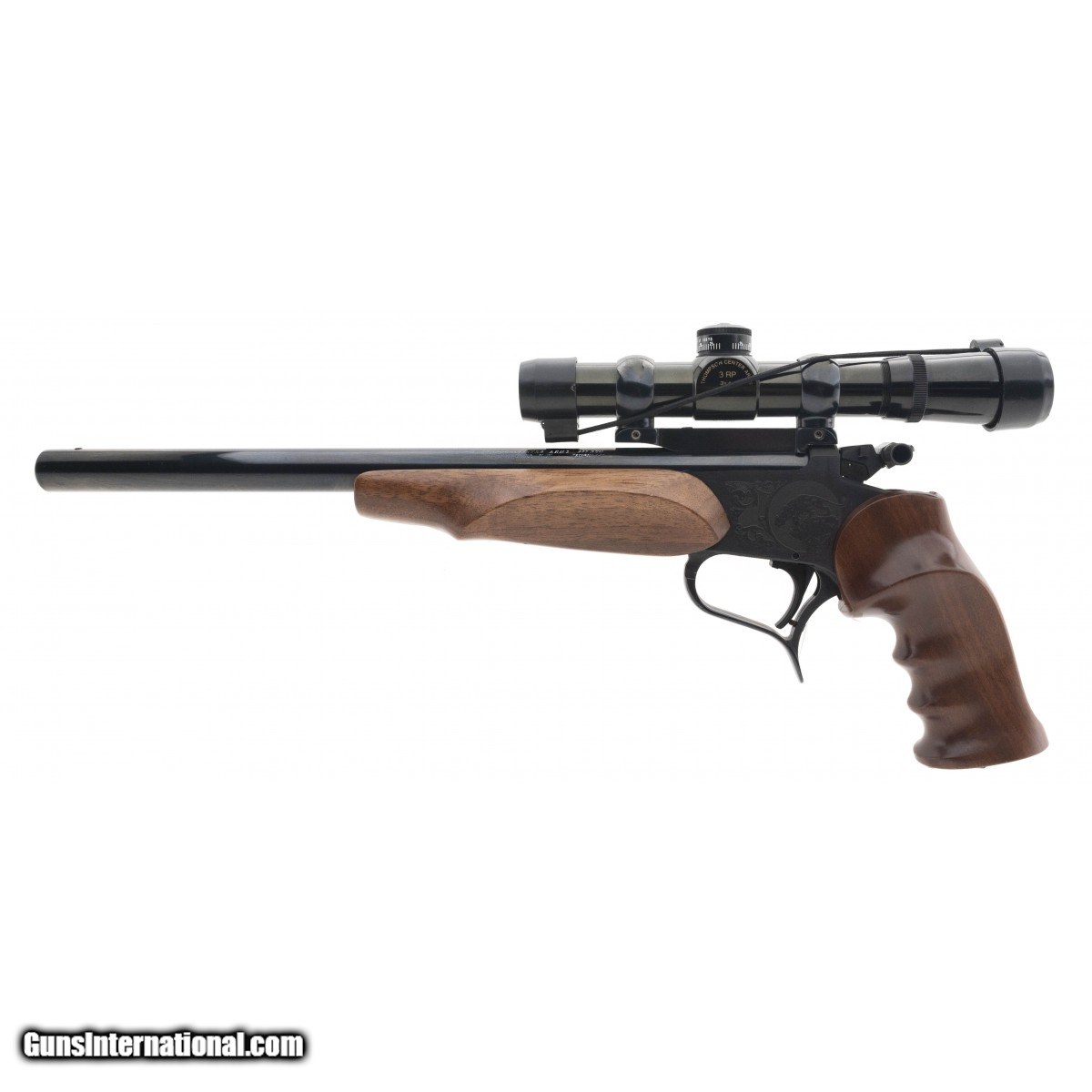 Description: " SN: 157392. Single shot pistol with 14"" barrel and T/C 3X scope. Excellent condition. SOLD |