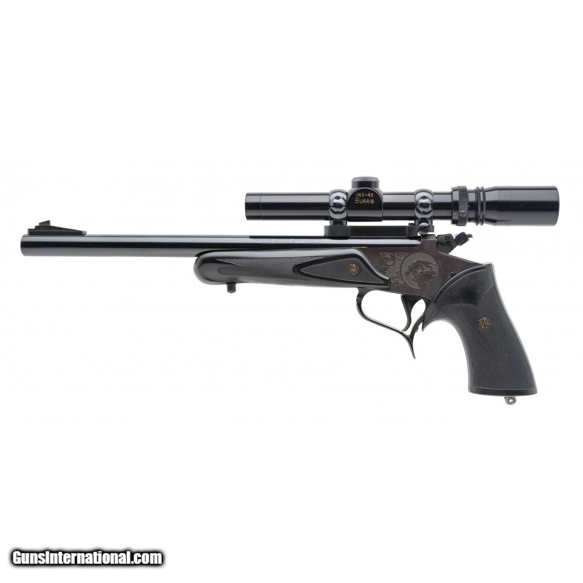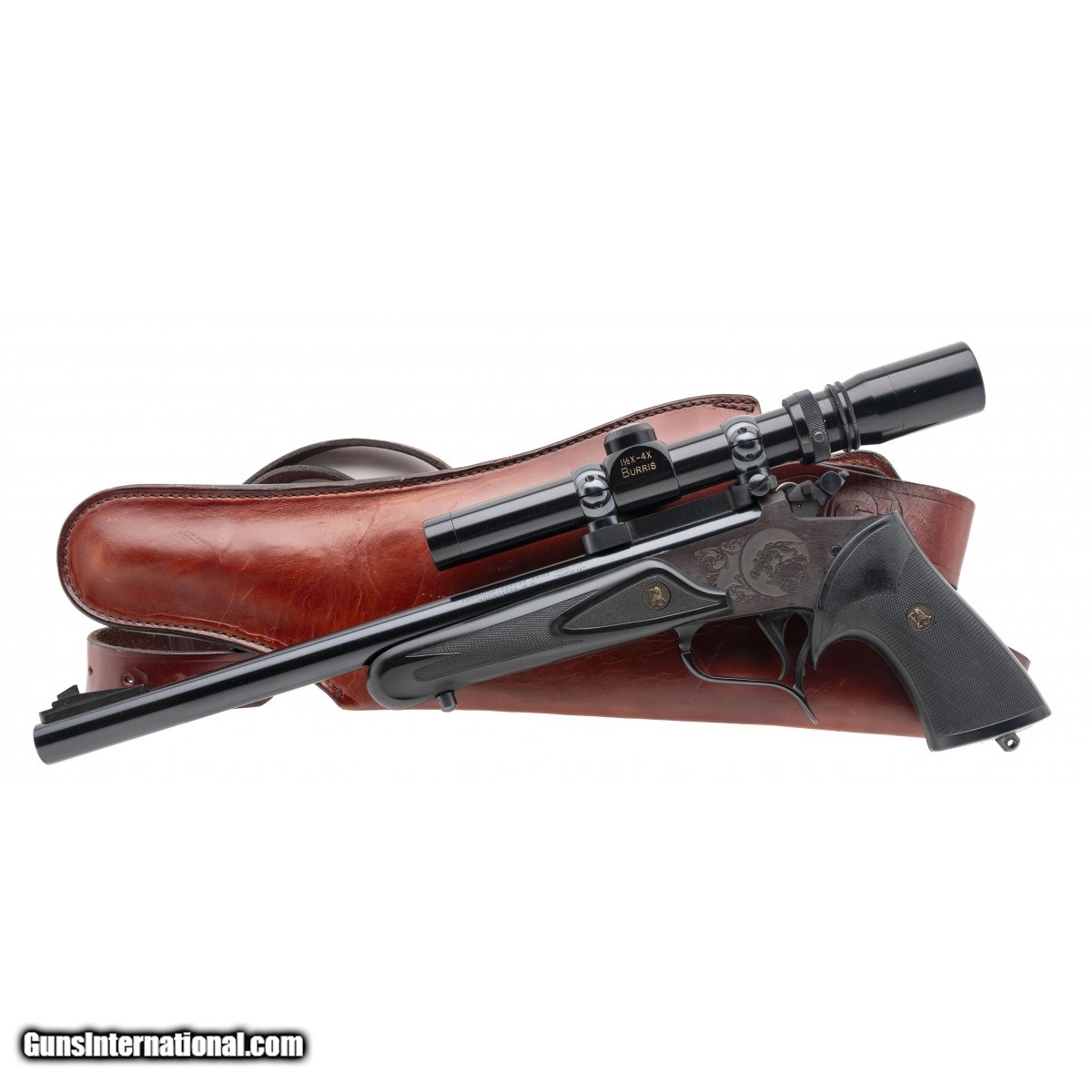 SN:124089. Modern production. .30-30 win with a 14"" barrel. Bore is in excellent condition. Single shot break action target pistol. Finish and grips are excellent. Pistol has Pachmayr grips and Burris 1.5x4x scope. Overall condition is excellent. Comes with holster.(CONSIGNMENT)