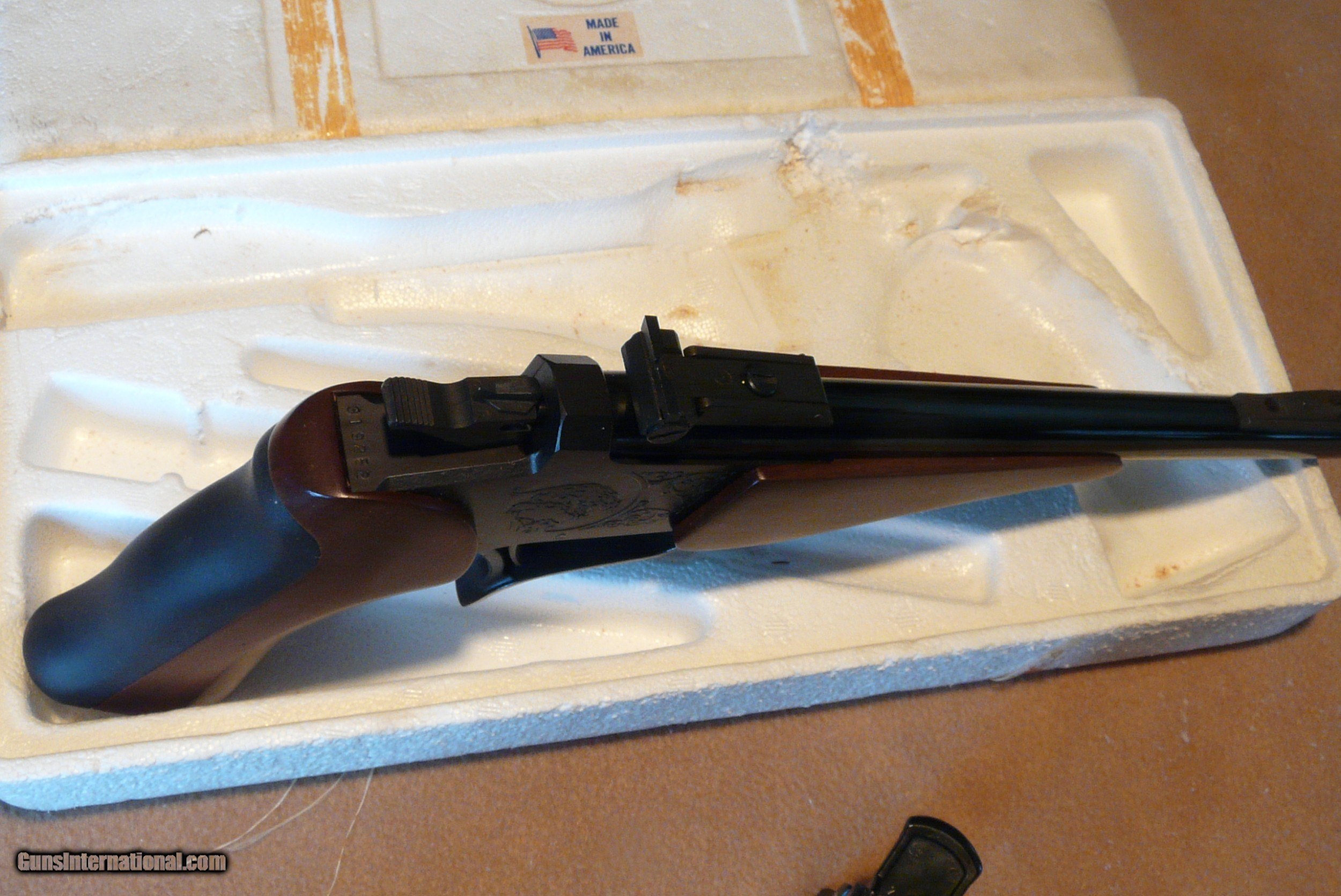 Description: This is in original styrofoam box, looks like new, SER # 319xxx, Both wood grips, and the receiver and 10" bbl is like new, no marks at all, maybe unfired?? ! Extra 22 Hornet bbl no longer for sale, Price is adjusted accordingly ! SOLD |