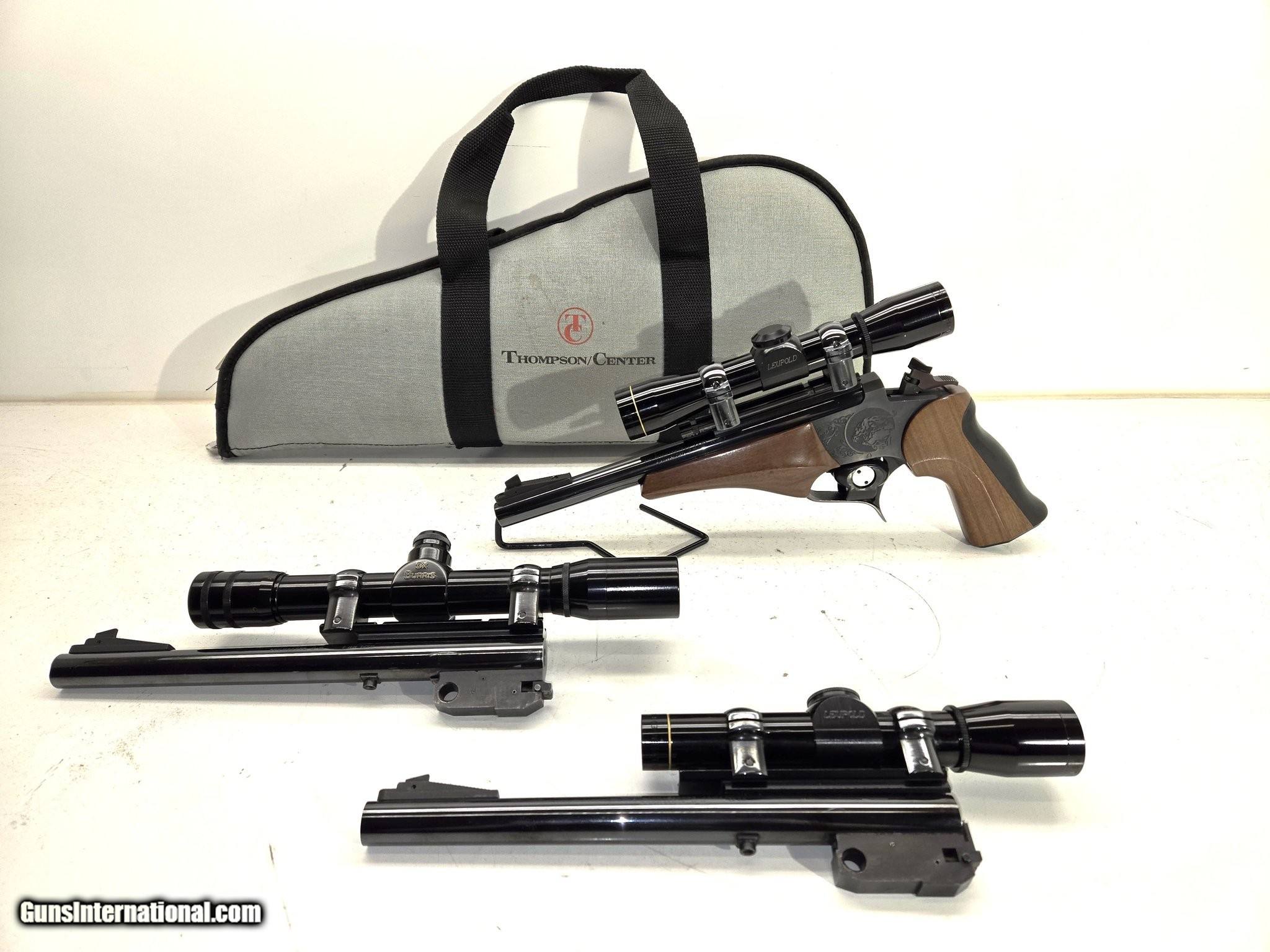 Description: Guns Listing ID: 574449 Thompson Center 3-Barrel Single-Shot Handgun, Blued 10-in This is a pre-owned Thompson Center break-action single-shot handgun, offered in excellent shape for its age. There is no visible pitting or rust, and only light wear in the finish consistent with light use. The bore(s) are bright and clean. The wood grip and forend remain solid with no cracks or splits. Included in the package: Three barrels, each with a mounted optic: • .44 Magnum with Leupold M8-4× Extended E.R. scope • 7 mm T/CU with Burris 5X (25–200) scope • .22 Long Rifle (LR) with Leupold M8-2× Extended E.R. scope Original fore-end and grip Scope mounting hardware All barrels are interchangeable on the same frame — no re-sighting needed after a barrel swap (since the optics are barrel-mounted). SOLD Manufacturer: THOMPSON/CENTER ARMS Model: CONTENDER Caliber Info: .44 MAGNUM Condition: Used - Non-Certified Barrels: 10" BARREL Action: SINGLE SHOT Finish: blued |